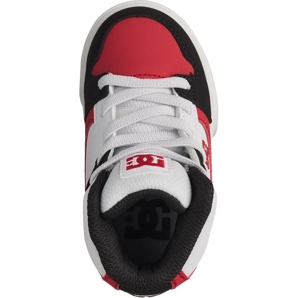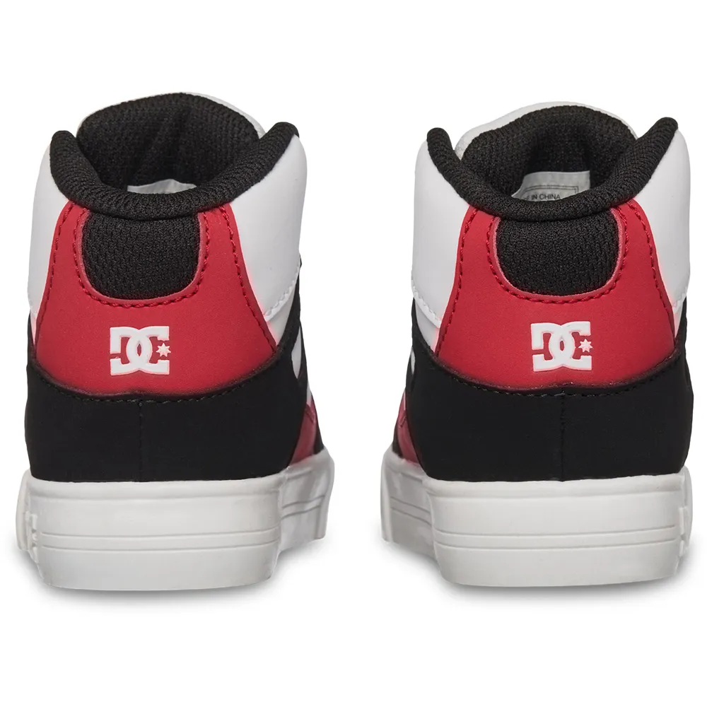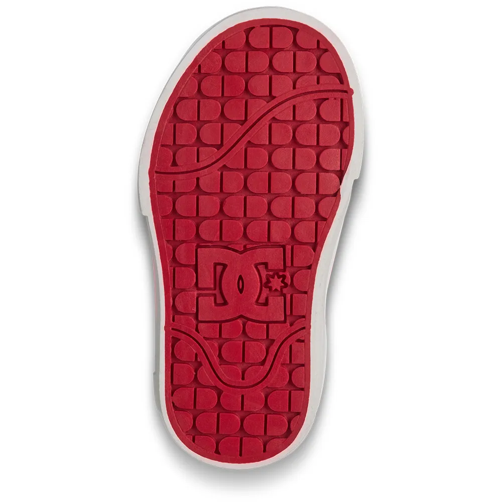 Верх из кожи, нубука или замши (в зависимости от расцветки), сетчатая подкладка, мягкий язычок и воротник из пеноматериала для комфорта и поддержки, конструкция с облегающей чашкой, износостойкая резиновая подошва, фирменная подошва DC с рисунком «Pill Pattern».