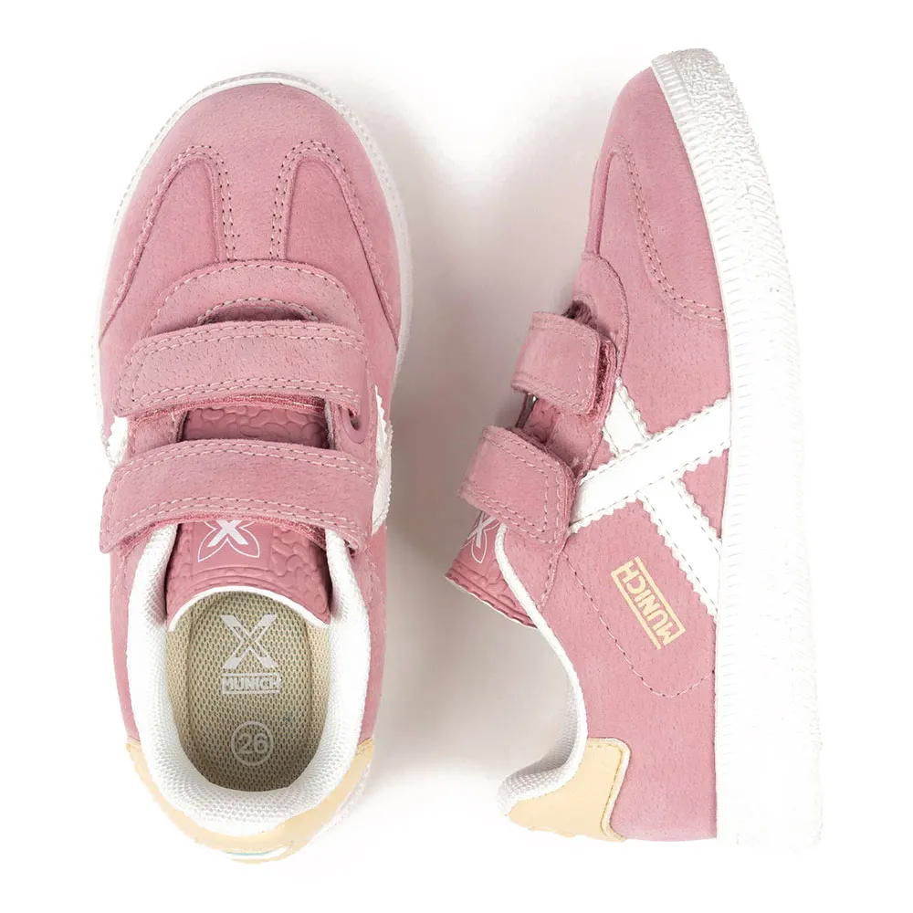 Кроссовки MINI BARRU возрождают дух легендарной мюнхенской модели Barru, сочетая классическое наследие с практичными потребностями детей. Эти кроссовки имеют мягкий пастельно-розовый верх, дополненный фирменным логотипом «X» и нашивкой на пятке. Созданные для активных игр, они оснащены прочной белой текстурированной резиновой подошвой для надежного сцепления. Двойная система застежек-липучек делает их невероятно удобными для надевания и снимания, способствуя развитию самостоятельности у малышей. Эти кроссовки отлично подойдут для повседневной носки в школу, игр на открытом воздухе или в качестве стильного и яркого дополнения к повседневным нарядам на выходные.