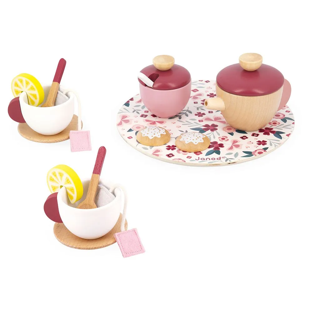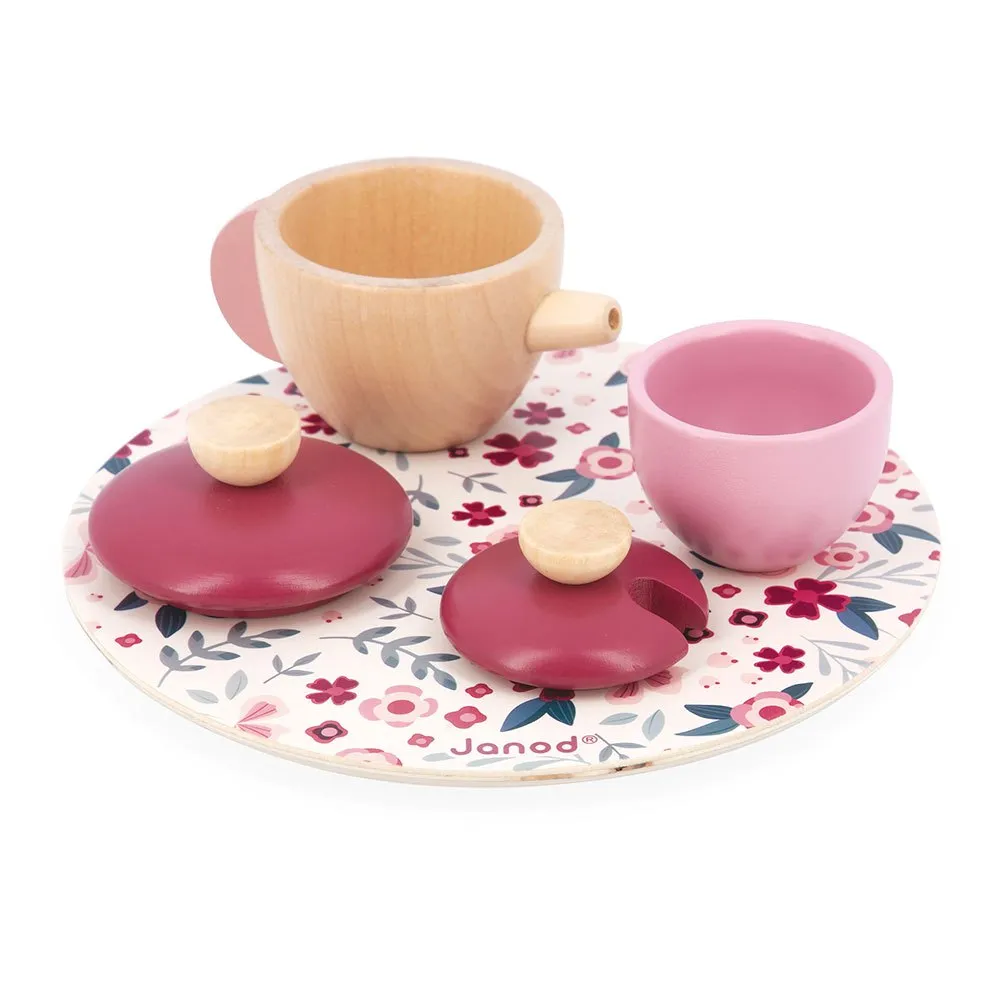 Пригласите друзей на чаепитие с этим очаровательным чайным сервизом с цветочным узором! В набор входят чайник, сахарница, две чашки, два блюдца и три деревянные ложки.