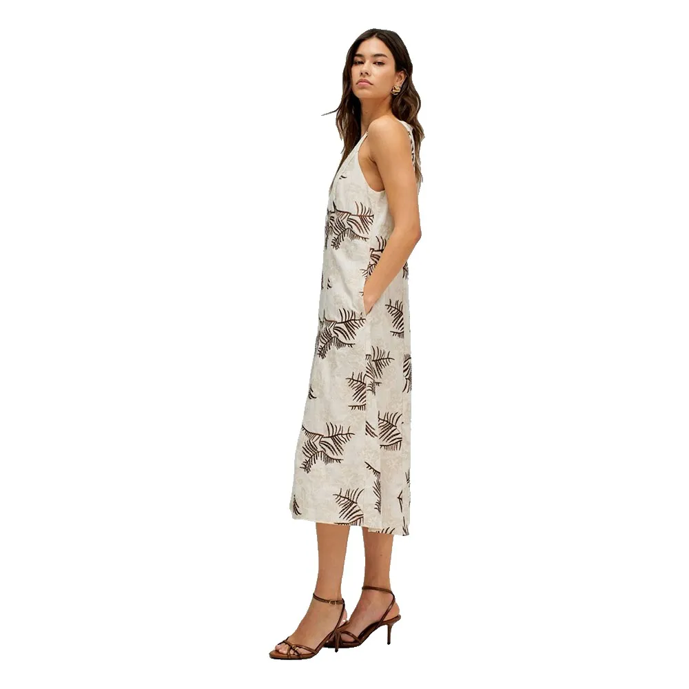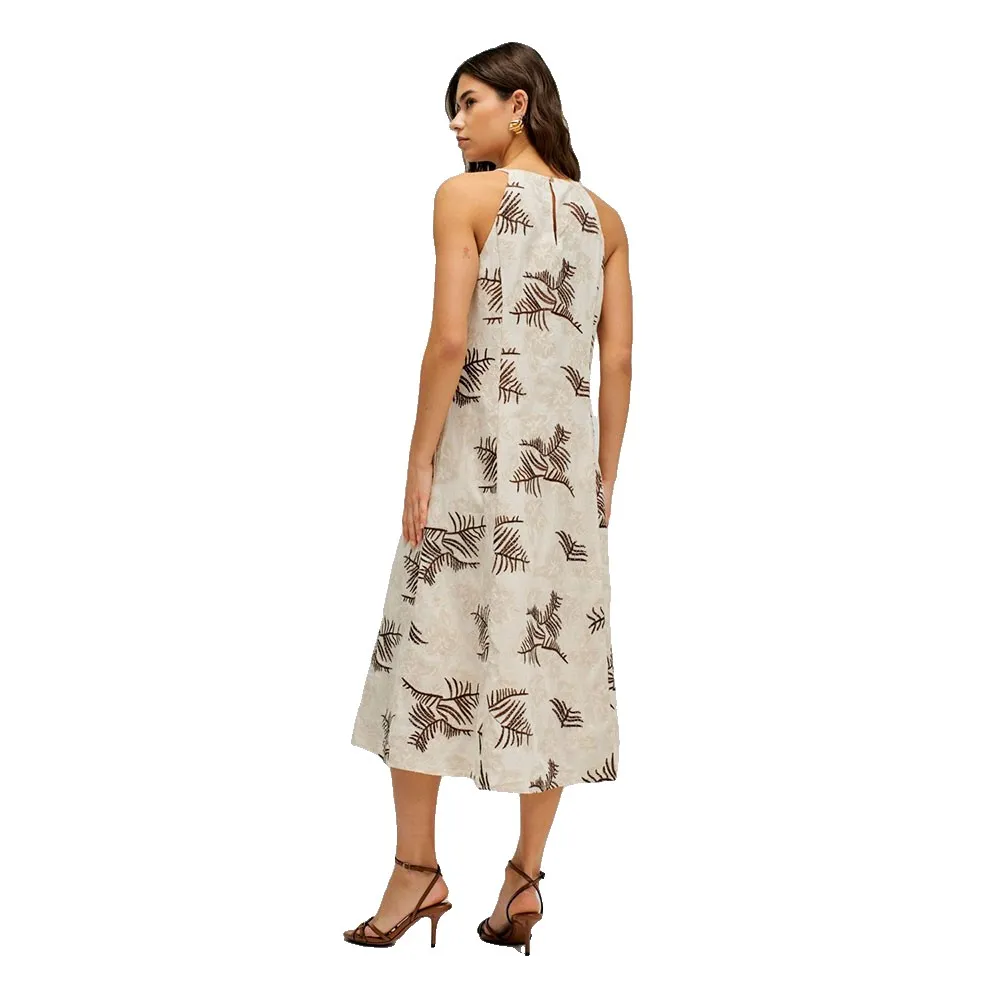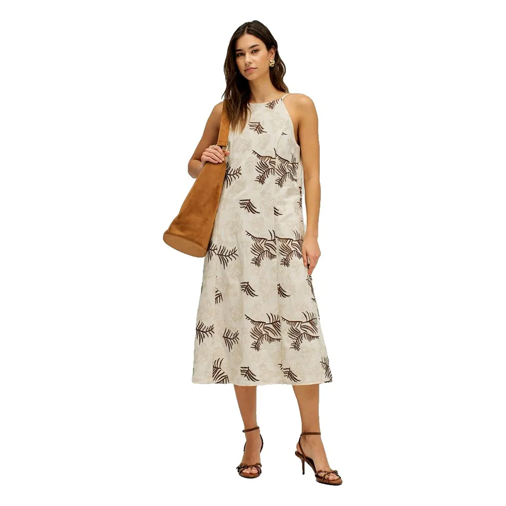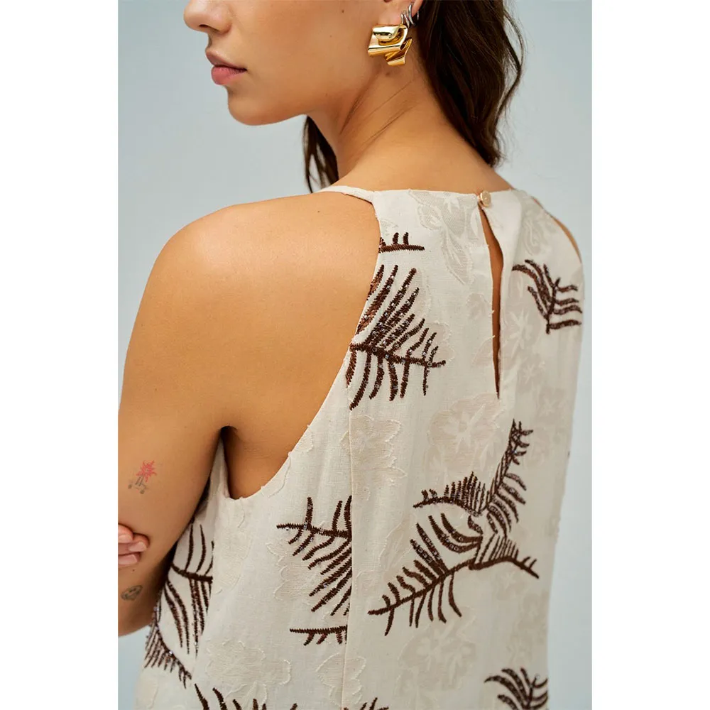 Кремового цвета, без рукавов, с круглым вырезом, создающим легкий и женственный силуэт.