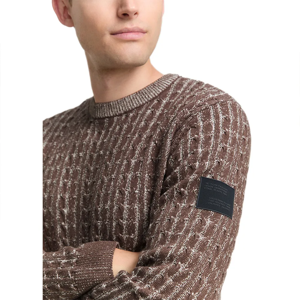 Джемпер с узором «косичка» на передней части и рукавах, с логотипом на верхней части рукава.