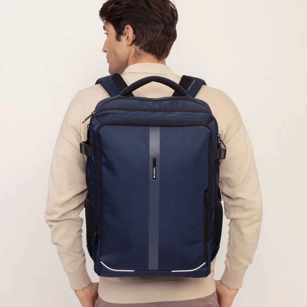 Вы можете путешествовать с ним благодаря креплению для чемодана и регулируемому нагрудному ремню, всегда делая ставку на комфорт благодаря мягкой подкладке на спине и плечевых лямках.