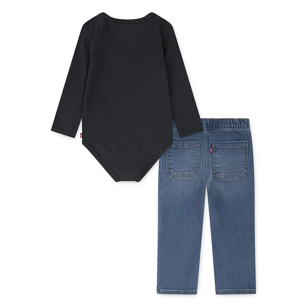 Приготовьтесь к новым приключениям с этим фантастическим комплектом Levi's, включающим очаровательный боди с графическим принтом и удобные джинсовые брюки! Этот комплект сочетает в себе милоту и комфорт, создавая идеальный уютный наряд для малыша, который вы сможете комбинировать с другими вещами из его гардероба.