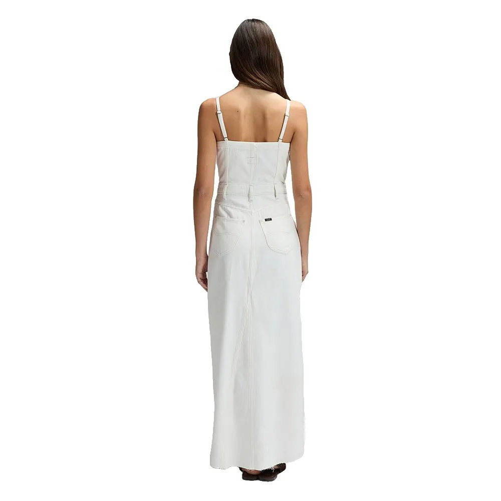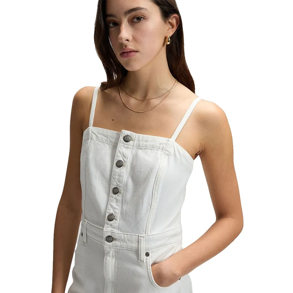 С регулируемыми бретелями, обеспечивающими идеальную посадку, оно представлено в пудрово-белом цвете, чтобы образ выглядел чистым и свежим.