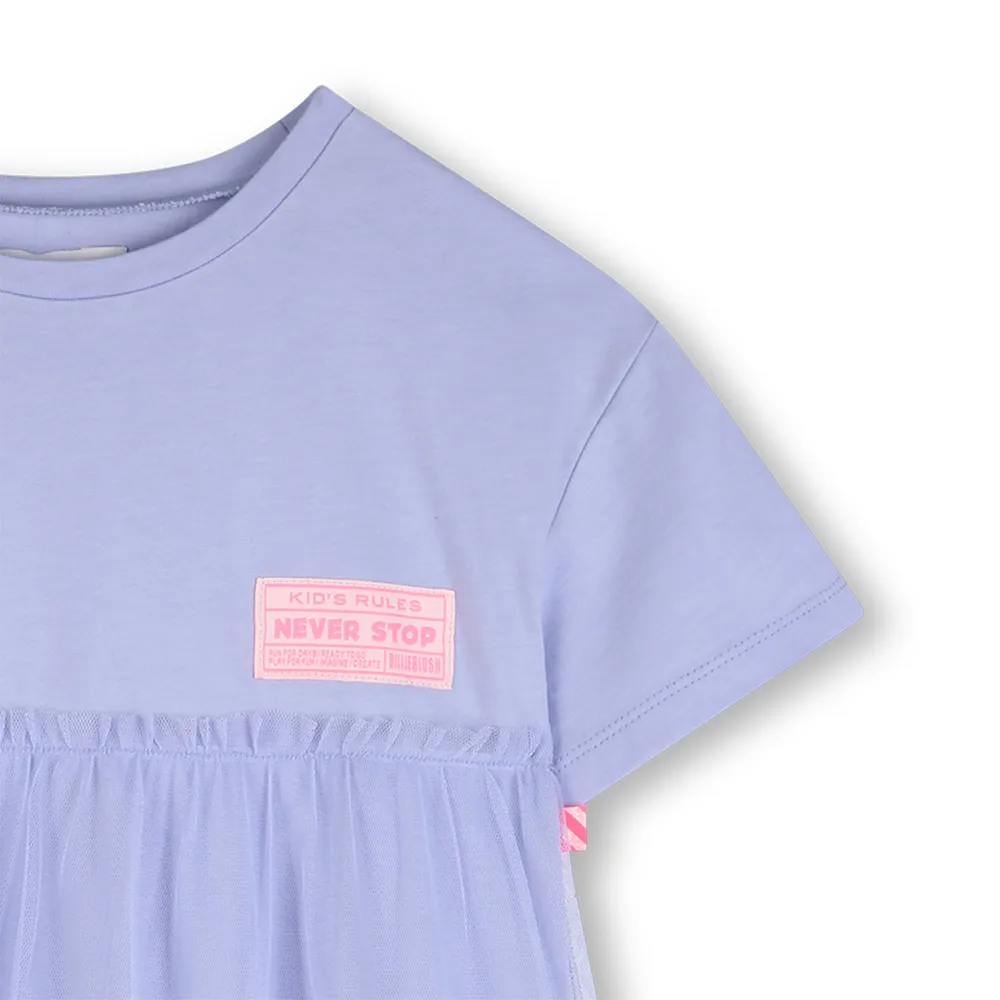 Двухцветное платье с оборками из трикотажа и разноцветного тюля.