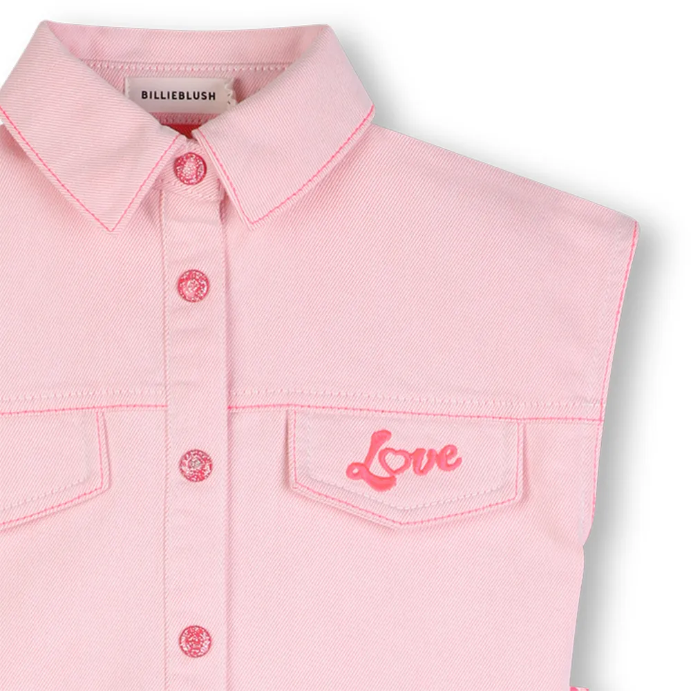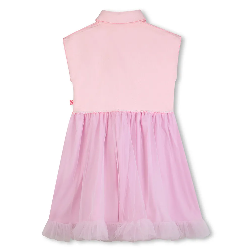 Платье из двухцветной саржи и двухцветного тюля. Воротник-рубашка, нагрудные карманы с вышивкой «Love». Застежка спереди на кнопки. Подол из тюля с оборкой и подкладкой. Состав: 100% полиэстер - Отделка: 70% хлопок, 30% полиэстер - Подкладка: 97% вискоза, 3% эластан. Инструкции по уходу: Машинная стирка в холодной воде - Не отбеливать - Не сушить в сушильной машине - Гладить при низкой температуре - Не подвергать химчистке