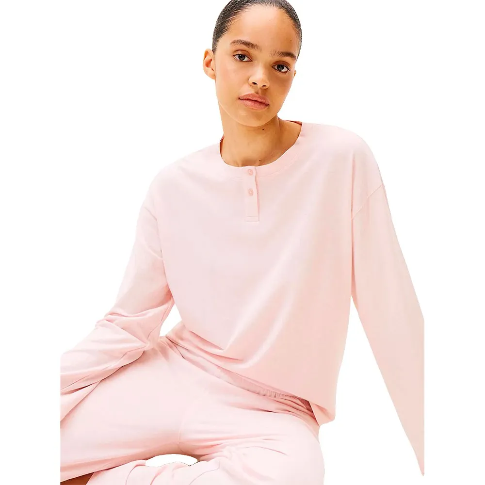 Пижамный комплект «Хенли» с длинными рукавами, изготовленный из органического хлопка, экологически чистого модала и эластана.