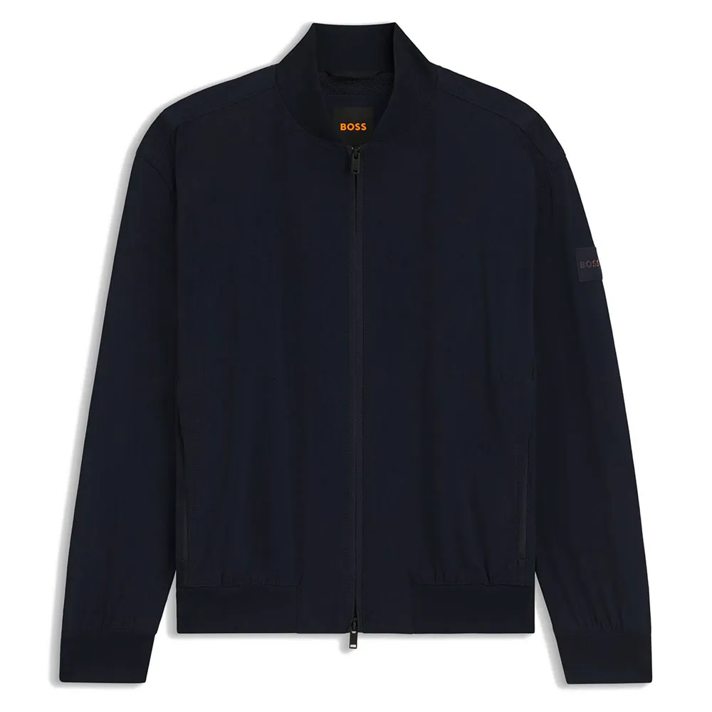Эта мужская куртка BOSS с двойной ребристой отделкой и застежкой-молнией обеспечивает невероятную эластичность и комфорт. Стандартный крой. Деталь с логотипом. Внутренний карман.