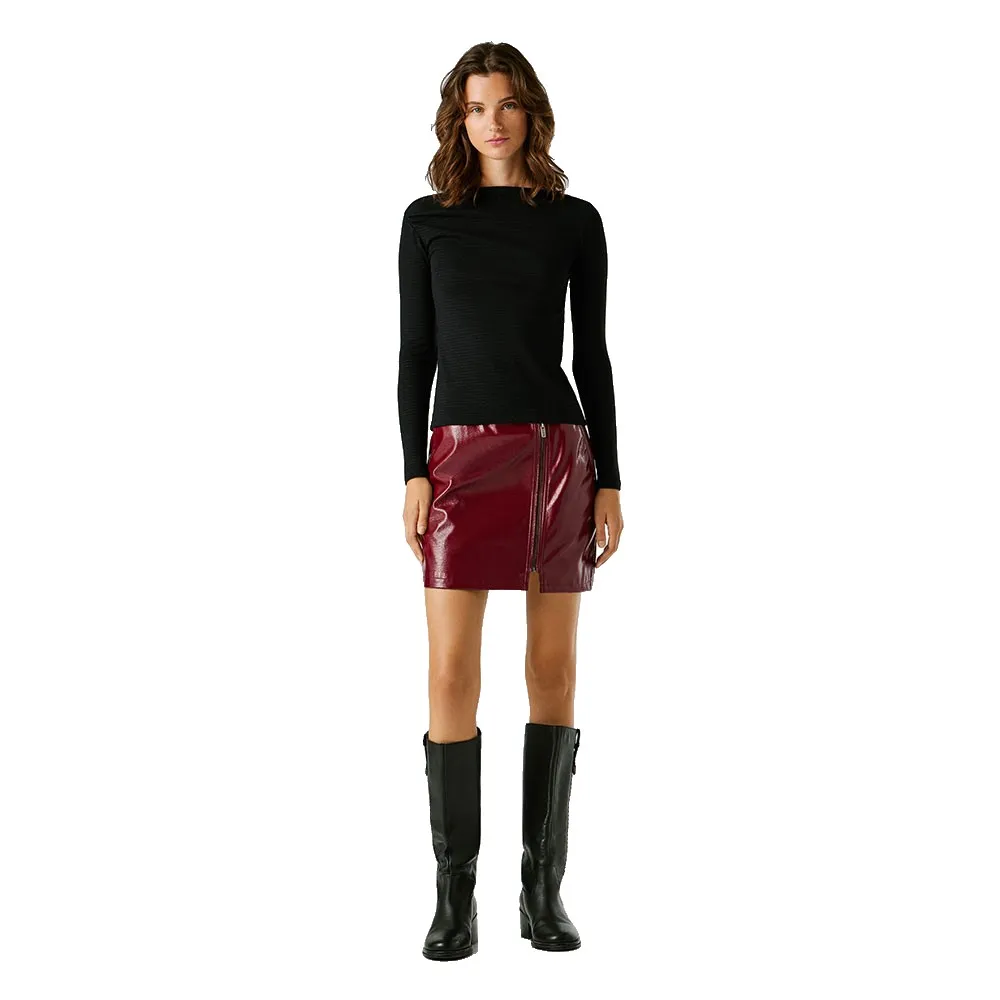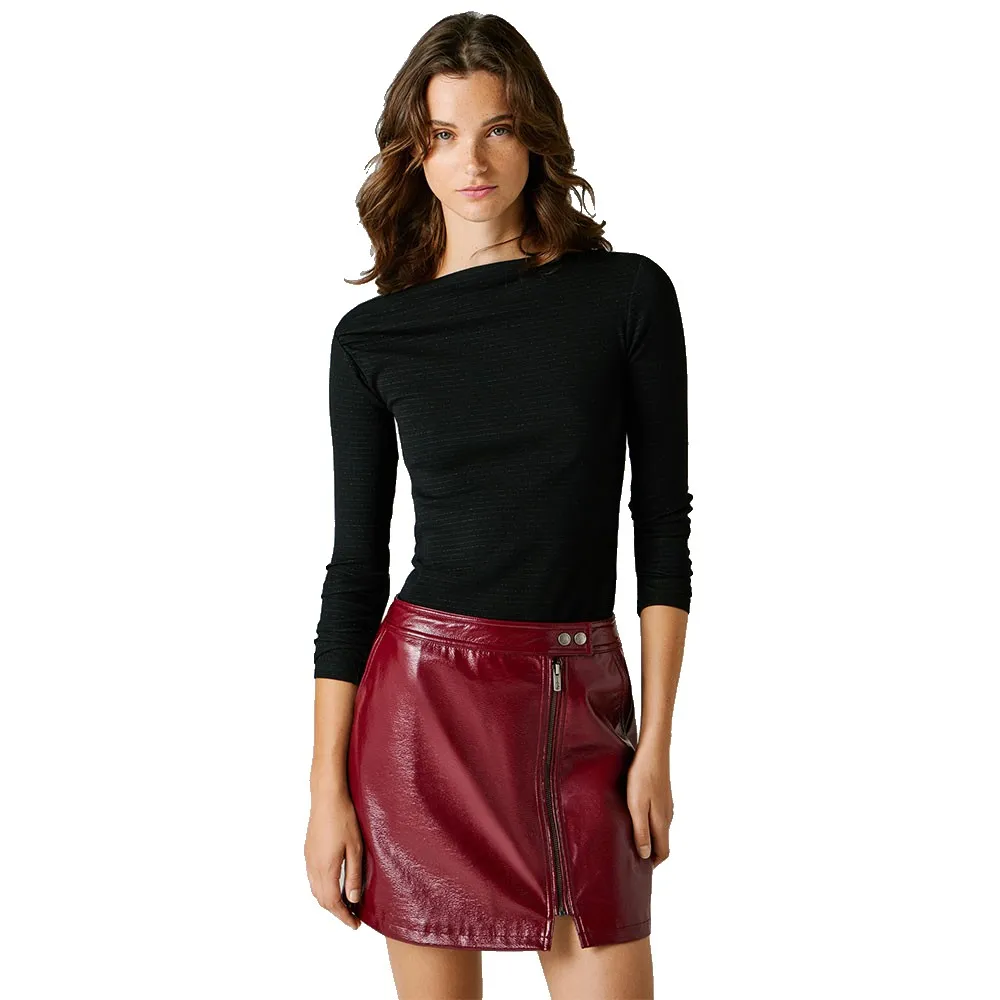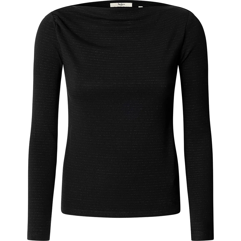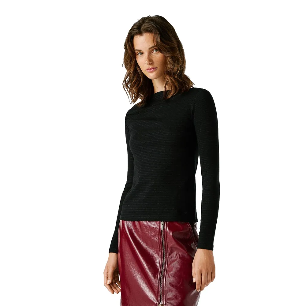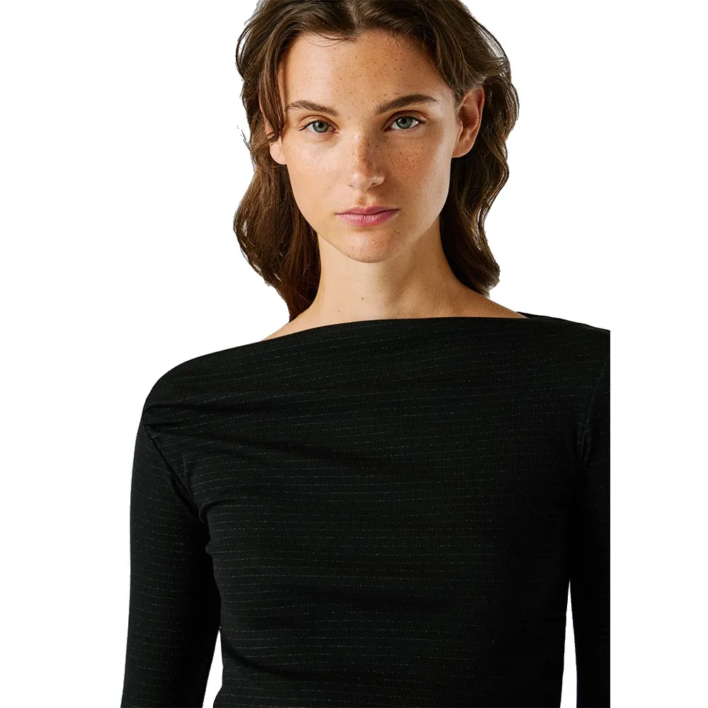 Футболка с длинными рукавами из ребристой ткани с асимметричными плечами и полосками по всей поверхности.