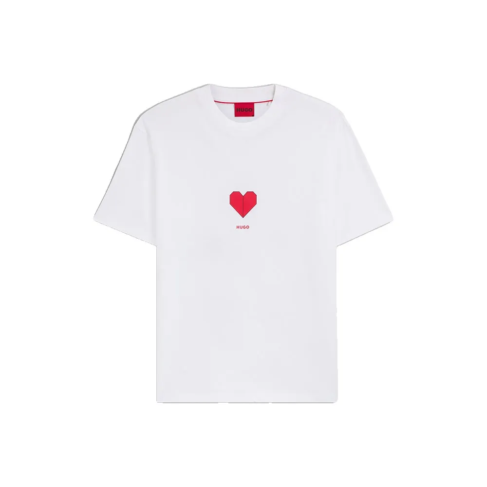 Добавьте свежести повседневным образам с помощью рисунка в виде сердца оригами на этой мужской футболке HUGO. Свободный крой из дышащего хлопкового трикотажа.