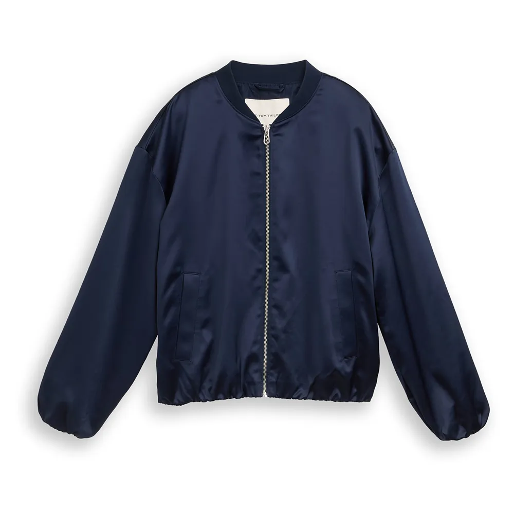 Куртка-блузон с воротником-стойкой, боковыми карманами и сборками по низу.