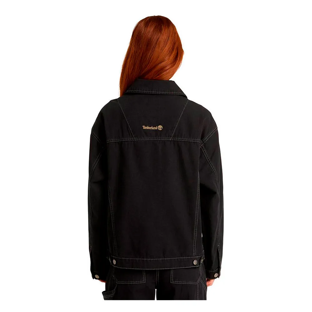 Женская куртка-тракер из парусины разработана с учетом прочности и стиля, она сшита из 100% хлопка, имеет свободный крой, регулируемую талию и манжеты.