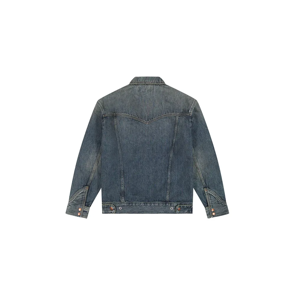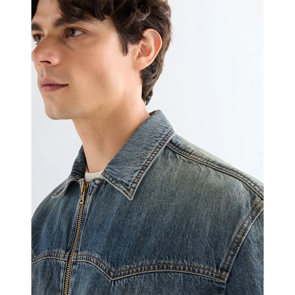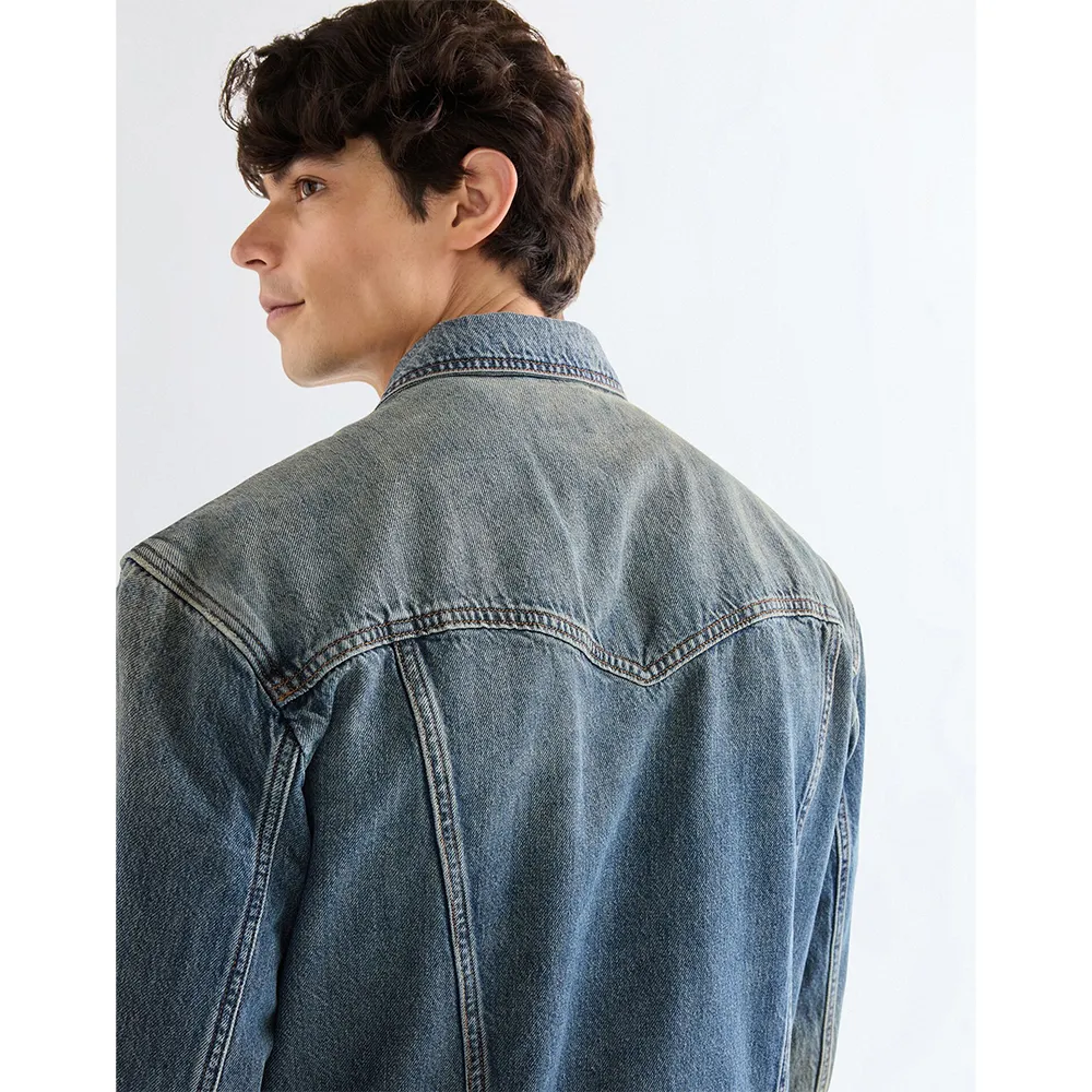 Изготовлена из выцветшего денима, создающего эффект поношенности и износа.