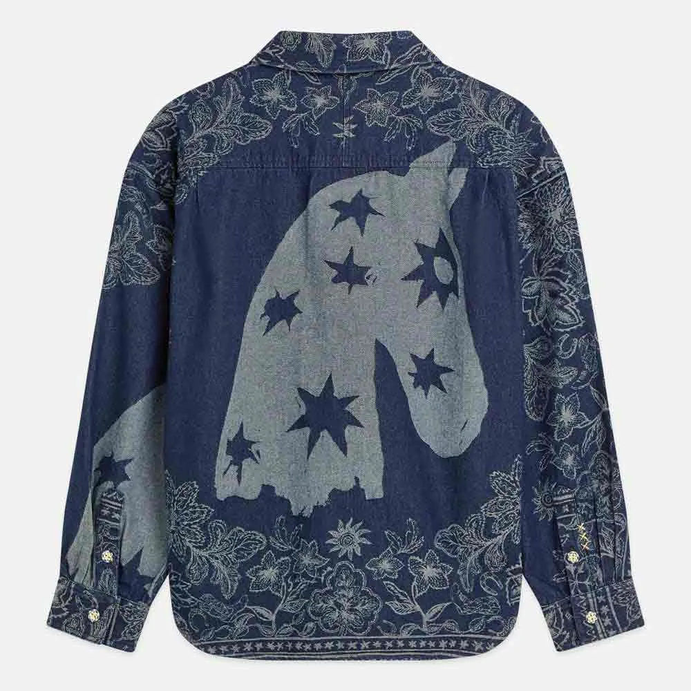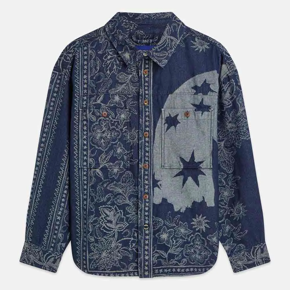 Рубашка-куртка из жаккардовой джинсовой ткани.