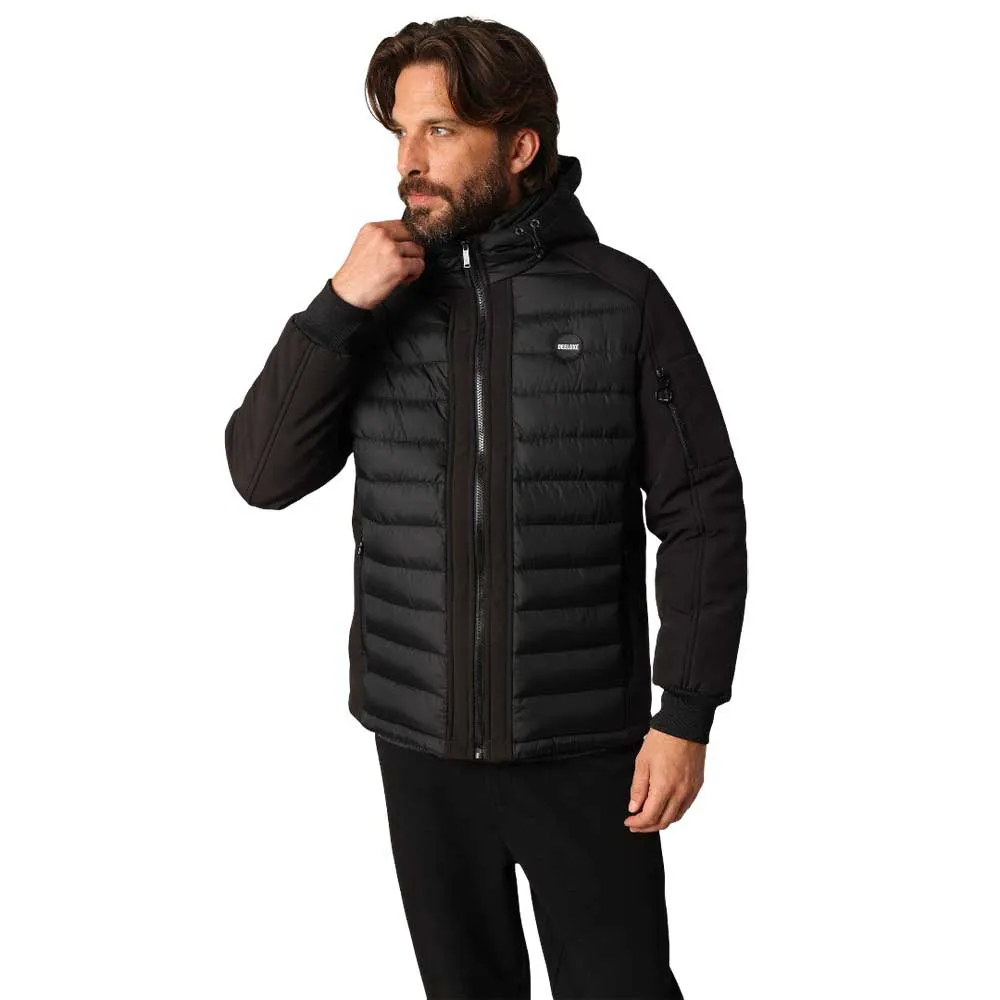 Незаменимый элемент зимнего гардероба, стеганая куртка Sector, создает городской и структурированный образ. Она оснащена регулируемым фиксированным капюшоном, застежкой-молнией по всей длине спереди и стеганой отделкой для оптимальной защиты от холода. Контрастные рукава из гладкого материала придают силуэту энергичность. Нам понравились боковые карманы на молнии, а также карман на молнии на левом рукаве - практичные и стильные. Круглая нашивка Deeluxe на груди добавляет сдержанности и индивидуальности. Удобная куртка в современном стиле, идеально подходящая для стильной защиты от низких температур.