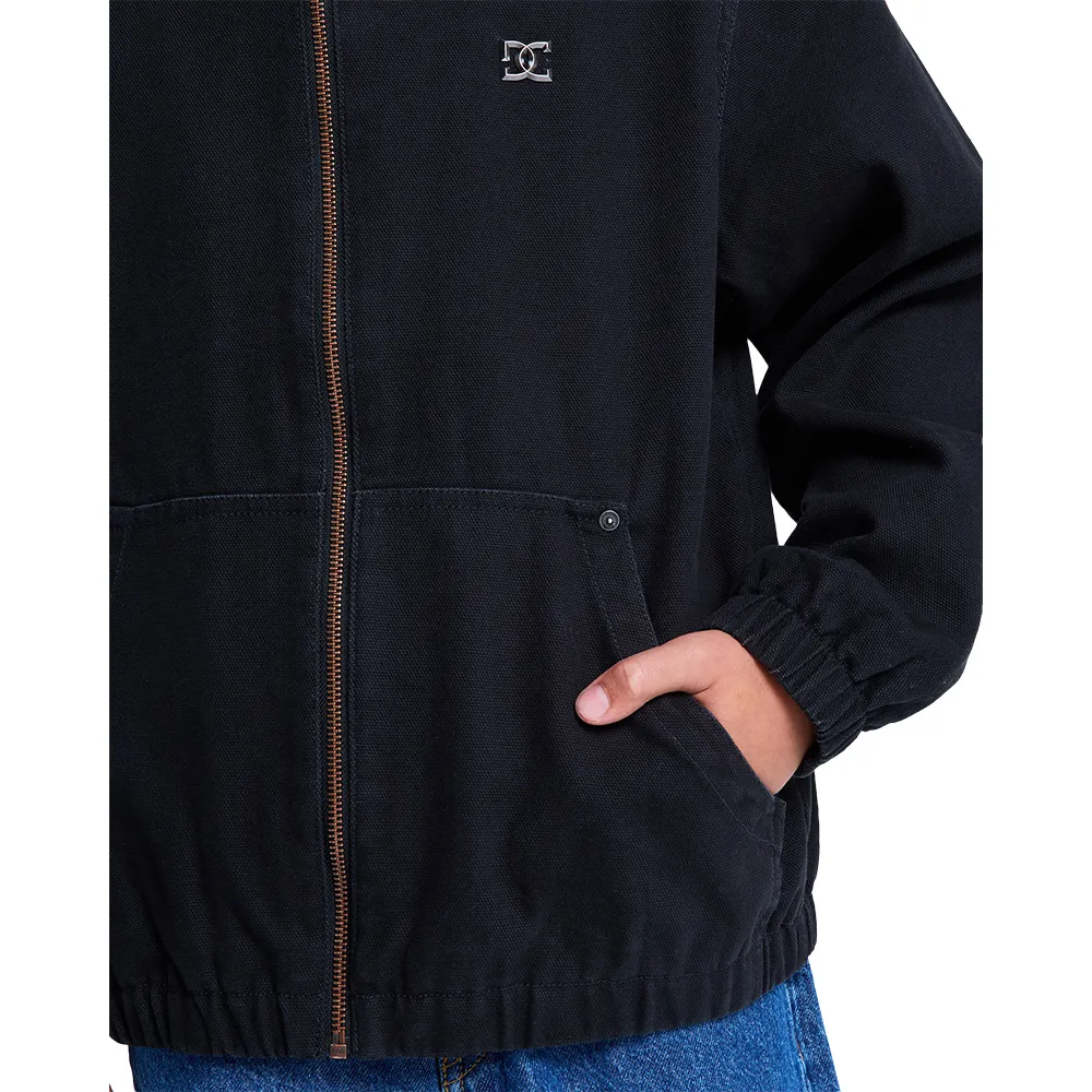 Обработка ткани: Ферментная стирка, Conscious By Nature: хлопок BCI, Ткань: Хлопковая парусина (368 г/м2), Крой: Свободный, непринужденный, Подкладка: Полиэстеровая тафта, Застежка: Молния, Карманы: Накладные карманы, Капюшон: Несъемный капюшон, Металлический логотип на груди.