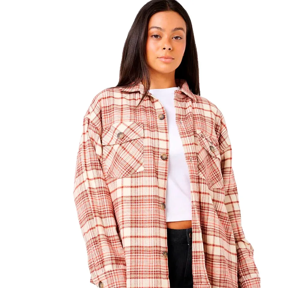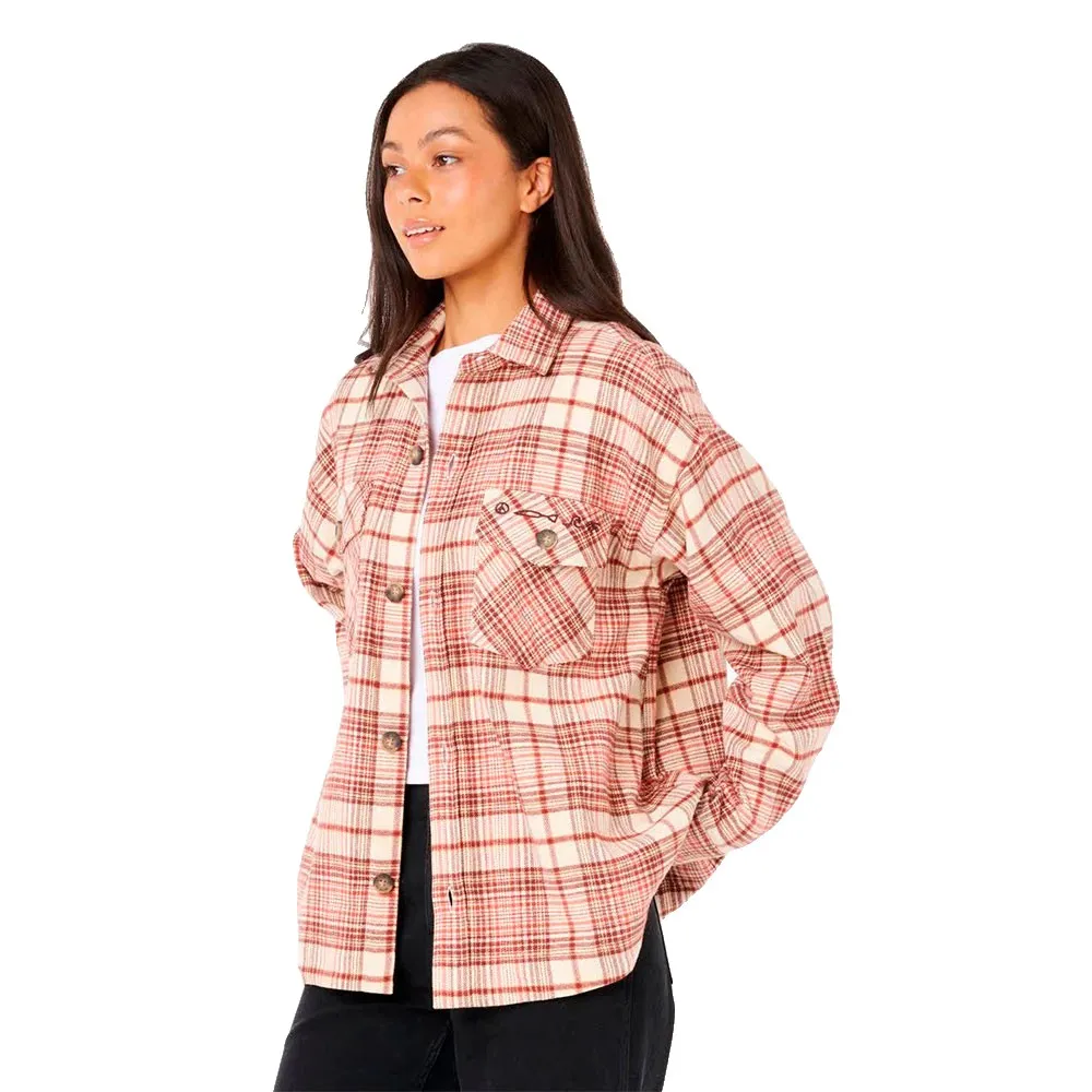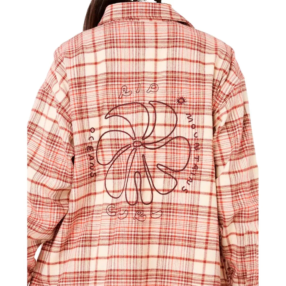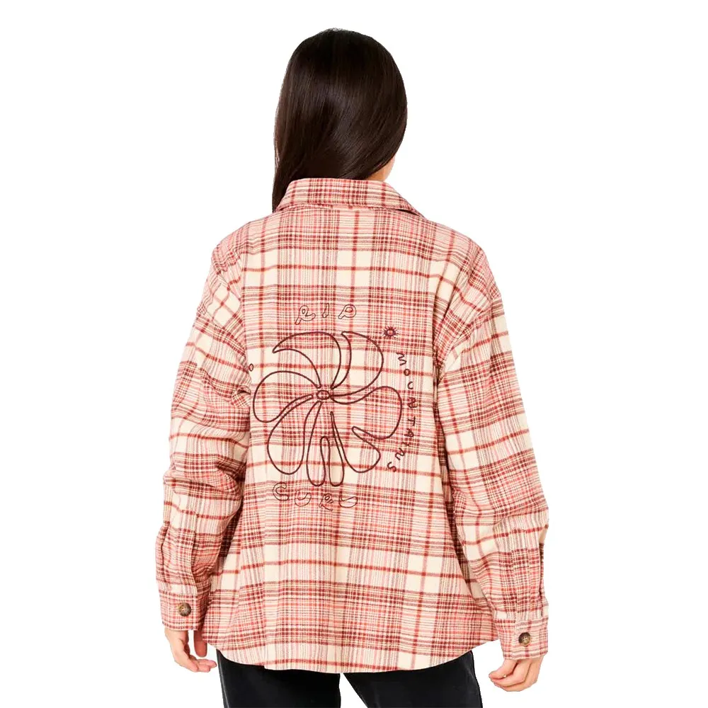 Классическая клетка сочетается с прибрежным стилем в фланелевой рубашке Shore Break, выполненной в теплых тонах и имеющей свободный крой. Эффектная вышивка на спине добавляет смелый, художественный штрих к этой повседневной вещи.