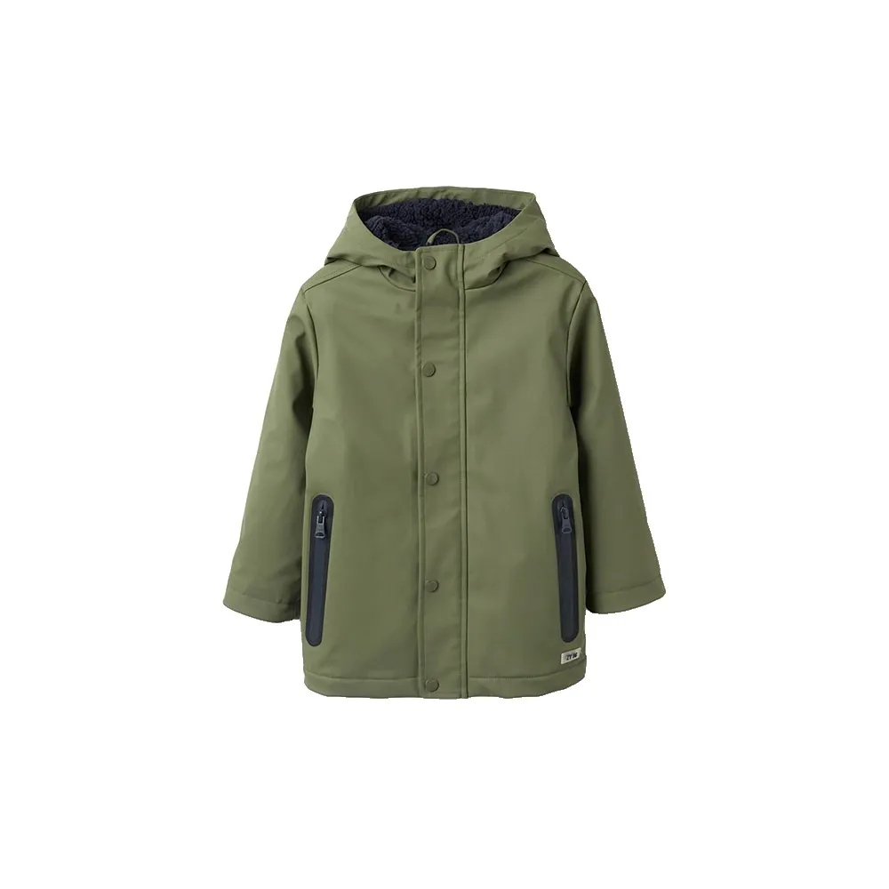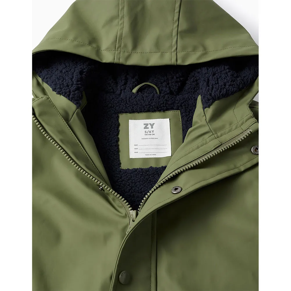 Резиновая парка для мальчиков. С капюшоном и подкладкой из искусственного меха для дополнительного тепла. Герметичные карманы на молнии. Застегивается на молнию и кнопки для удобства одевания. Внутренняя этикетка для написания имени ребенка. Мы заботимся: наполнитель этой куртки изготовлен из переработанного полиэстера. Идеальная куртка для зимних месяцев.