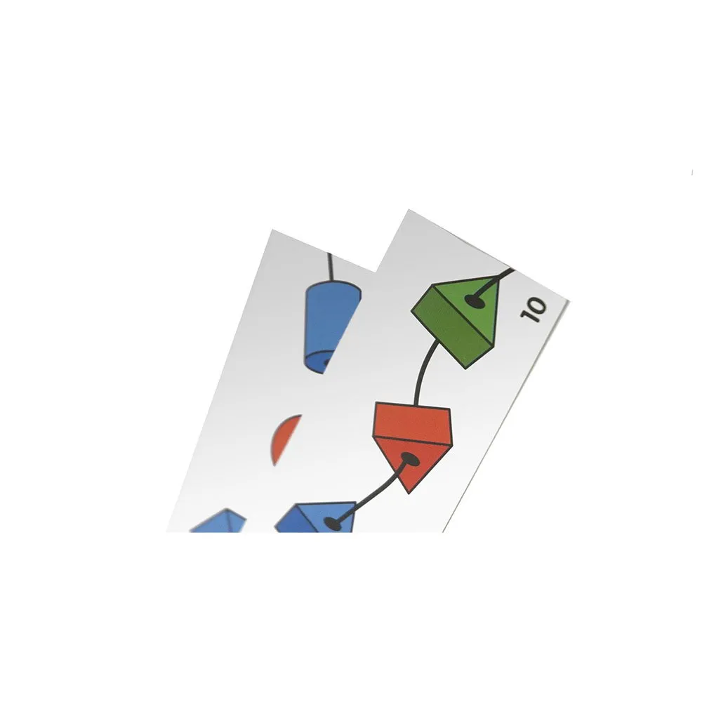Изготовлено из прочного пластика. В комплект входят 5 различных форм, плетеные шнурки и набор карточек с различными иллюстрациями, классификациями и упражнениями на соединение элементов.