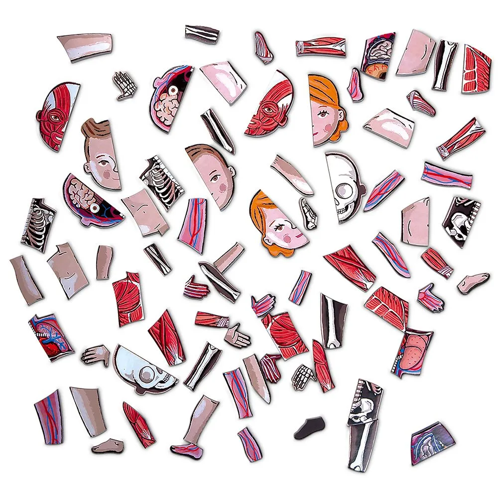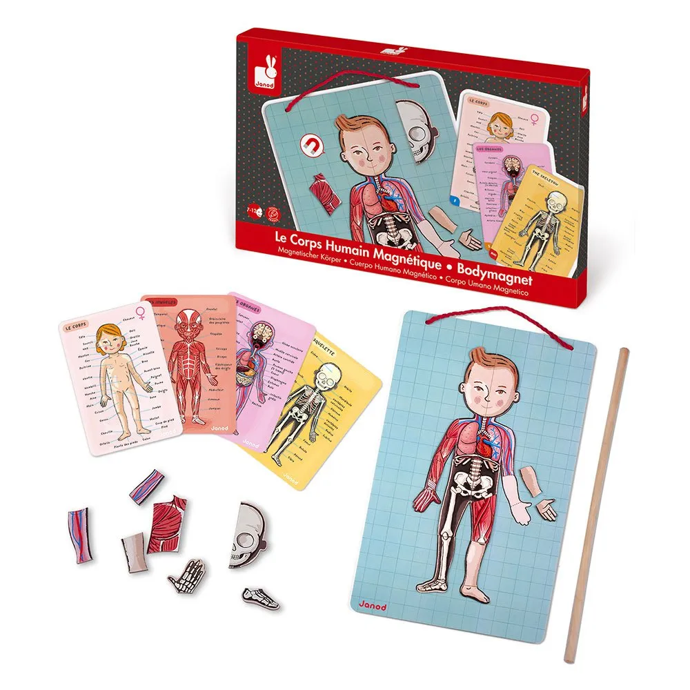 76 магнитов и 1 магнитная доска для изучения и сборки различных частей человеческого тела.