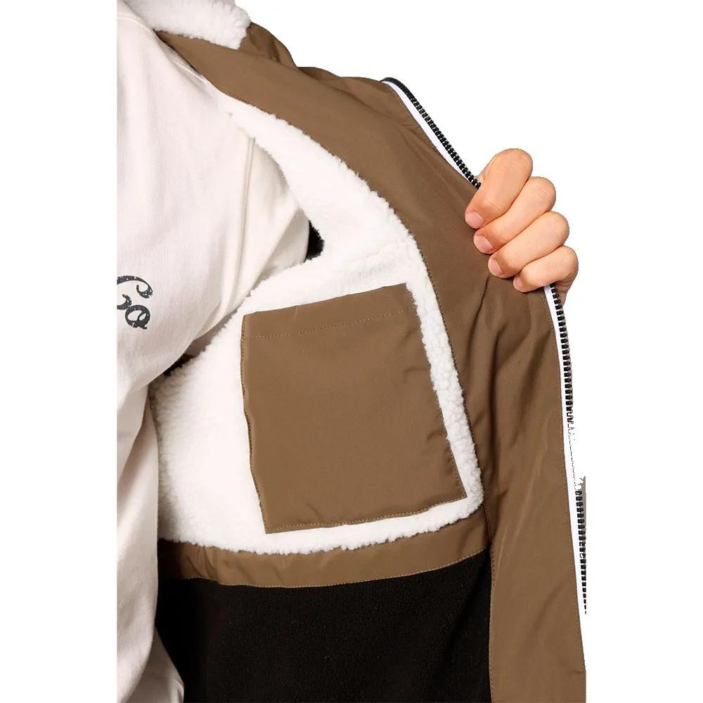 Водоотталкивающий материал цвета хаки контрастирует с ультрамягкой белой подкладкой с эффектом шерпы, обеспечивая оптимальный комфорт зимой.