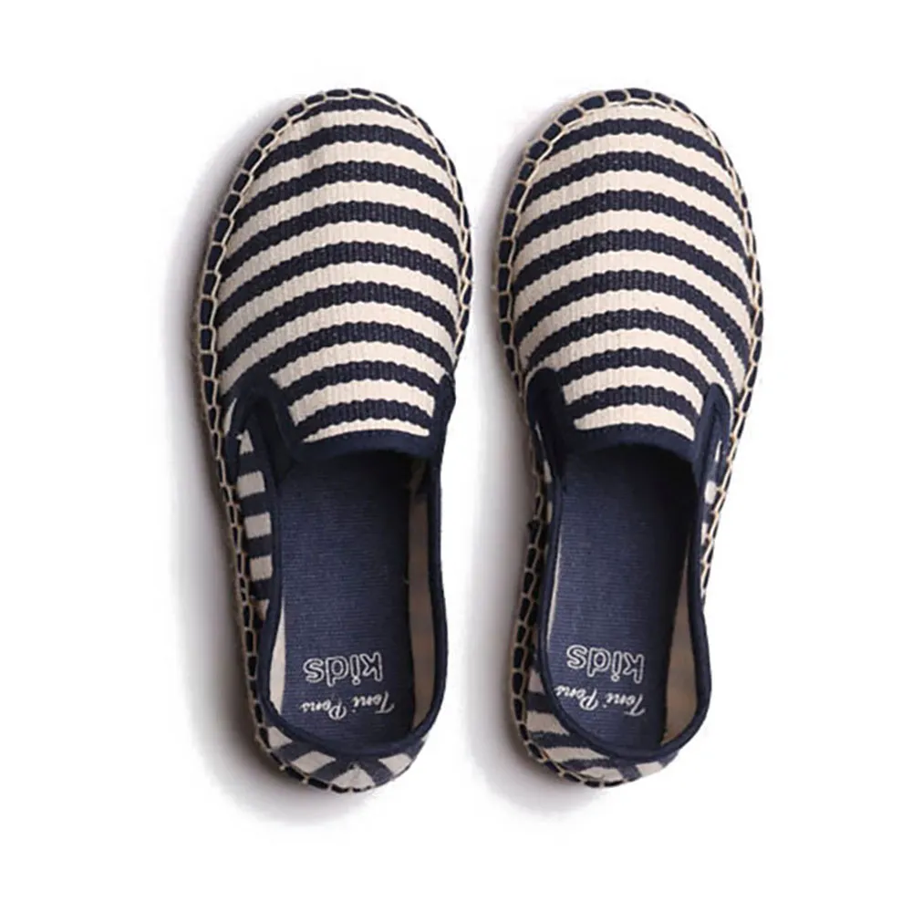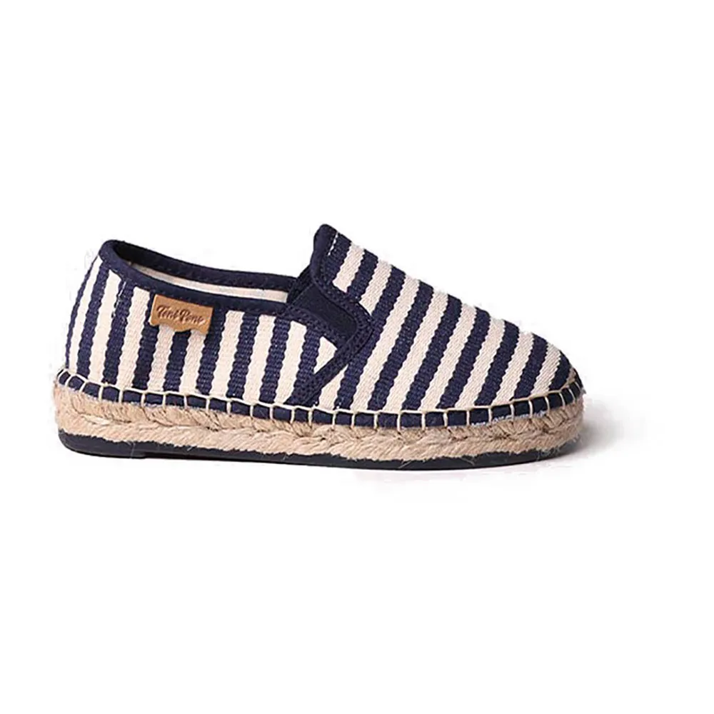 Эти детские эспадрильи в матросскую полоску изготовлены из ткани.