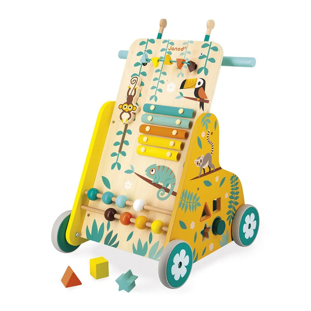 Отправляйтесь с нами в захватывающее приключение по тропическому лесу! Эта многофункциональная тележка, которую можно толкать, отлично подходит для малышей, которые учатся ходить.