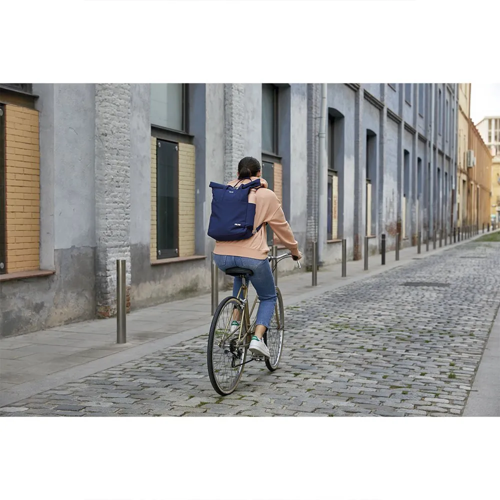 Городской рюкзак с застежкой-рулоном сверху, позволяющий регулировать его вместимость в зависимости от содержимого.