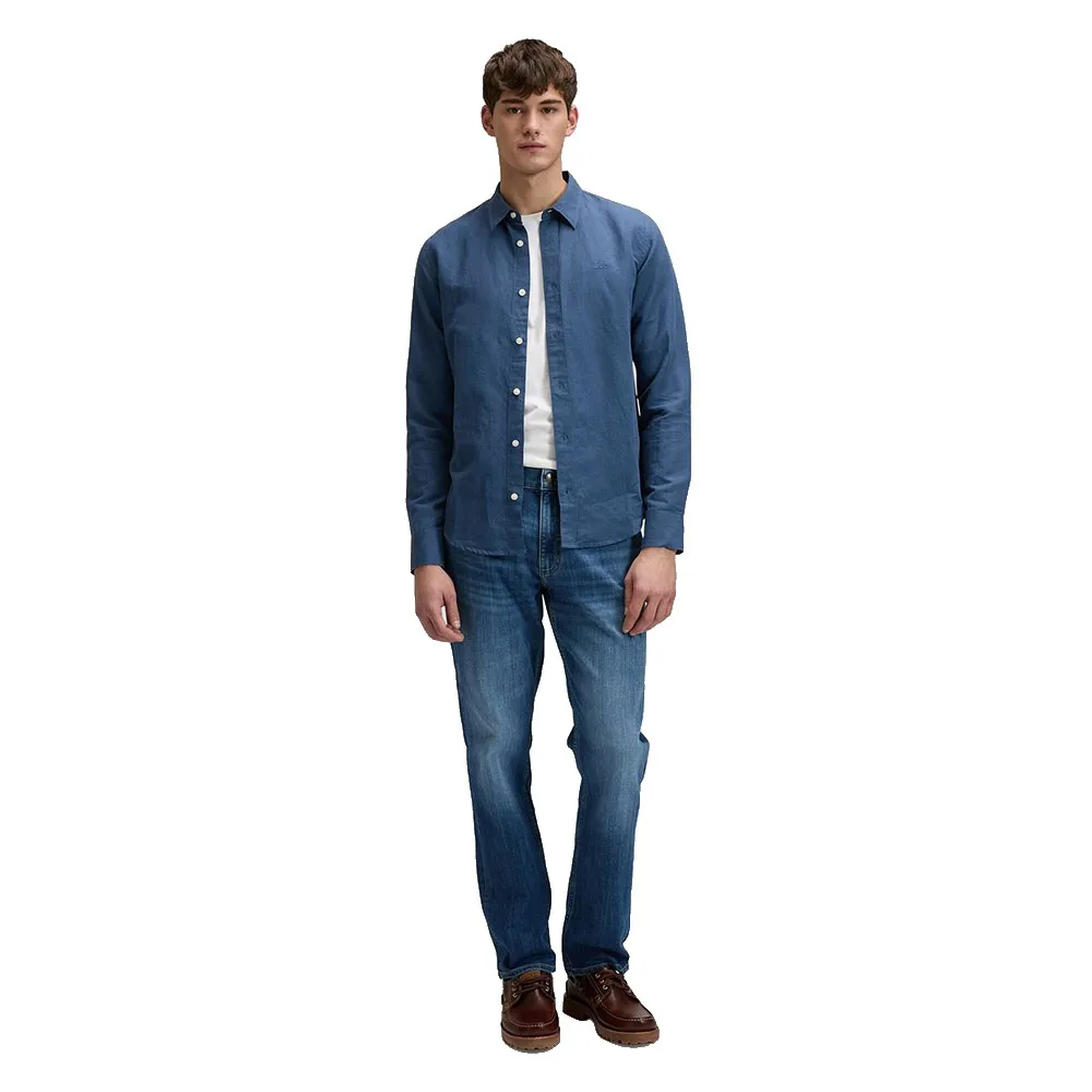 Изготовленная из ткани, сочетающей в себе лучшие качества хлопка и легкость льна, эта модель представлена в насыщенном цвете Academy Blue с вышитым логотипом в тон на груди.