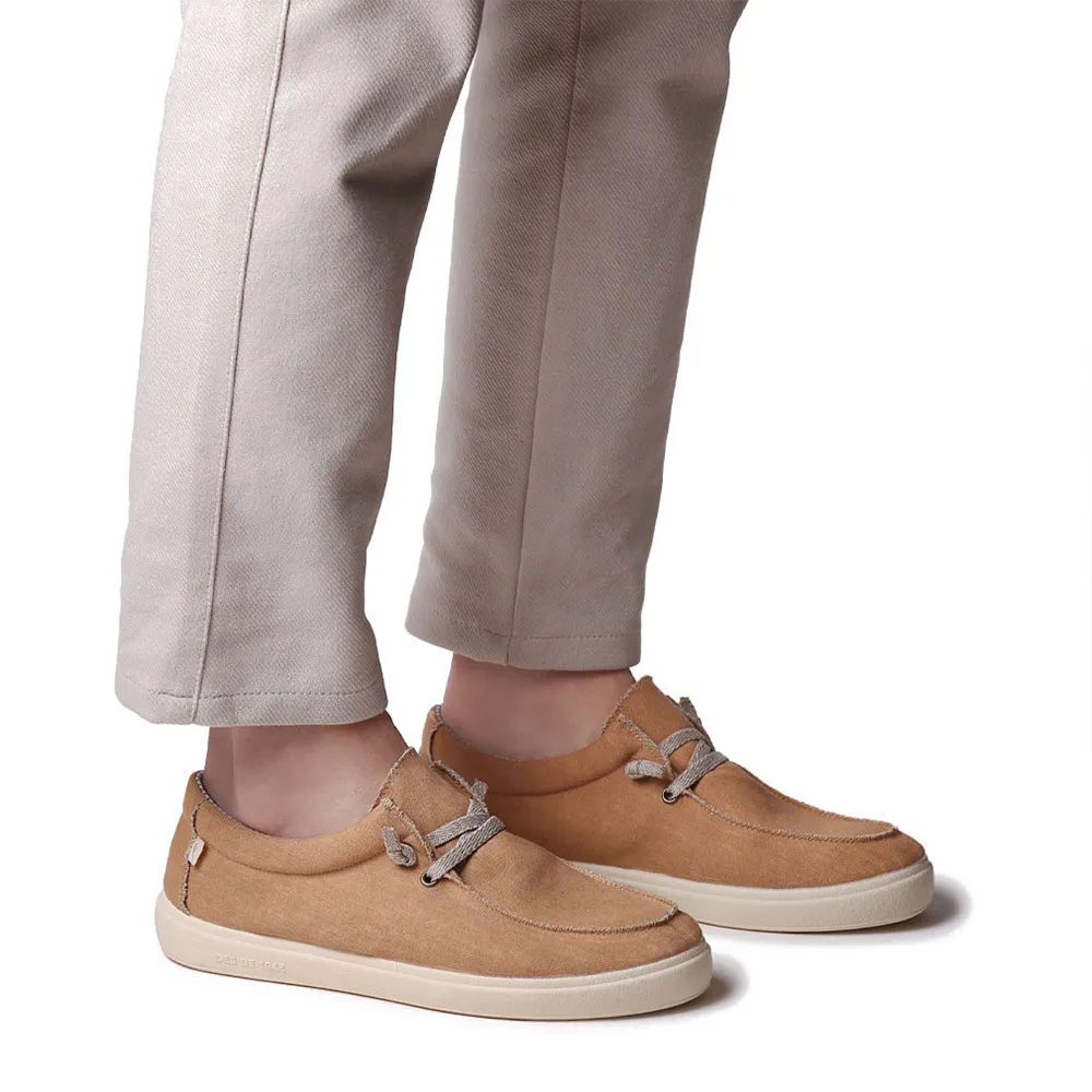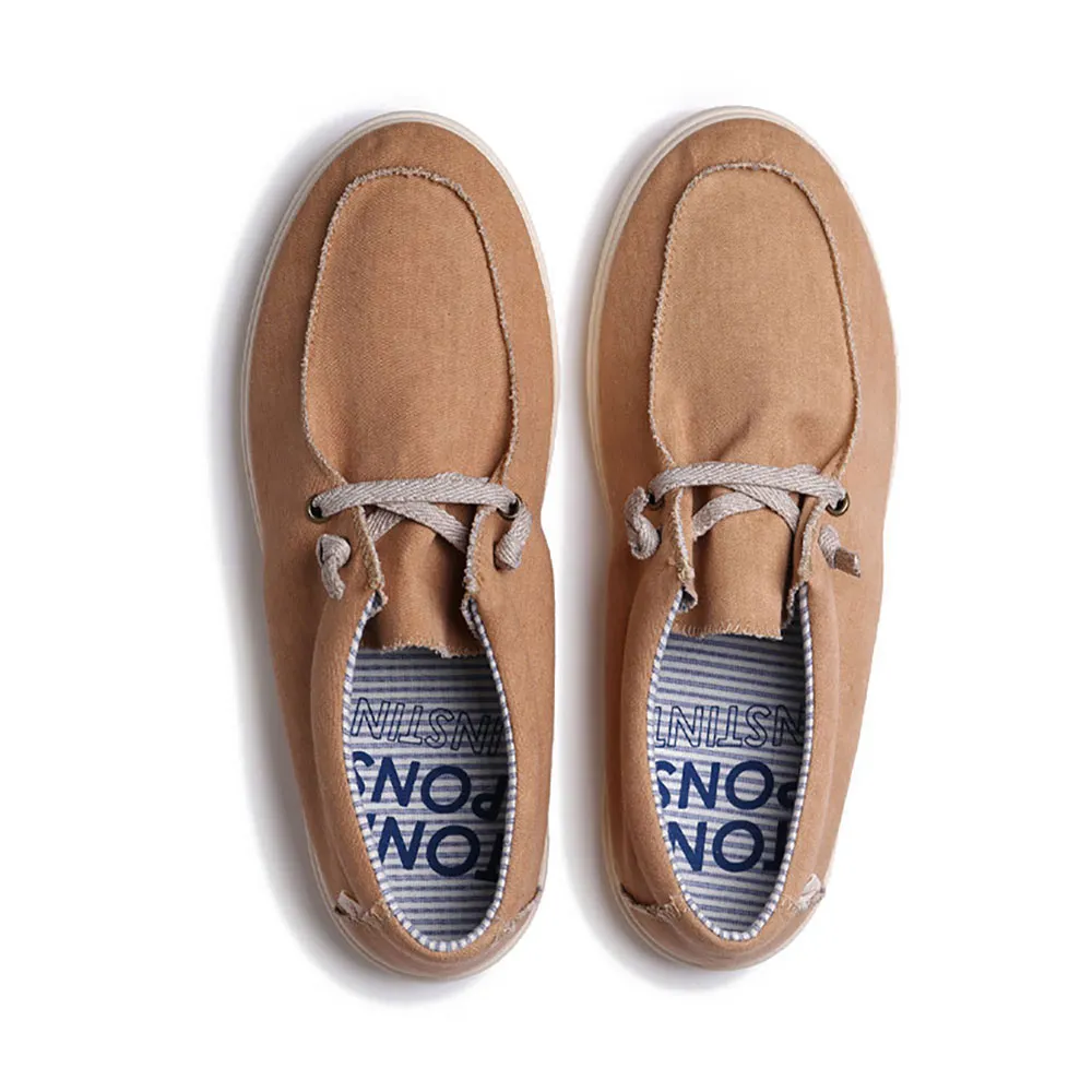 Эти мужские туфли с резиновой подошвой и шнурками изготовлены из хлопчатобумажной ткани.