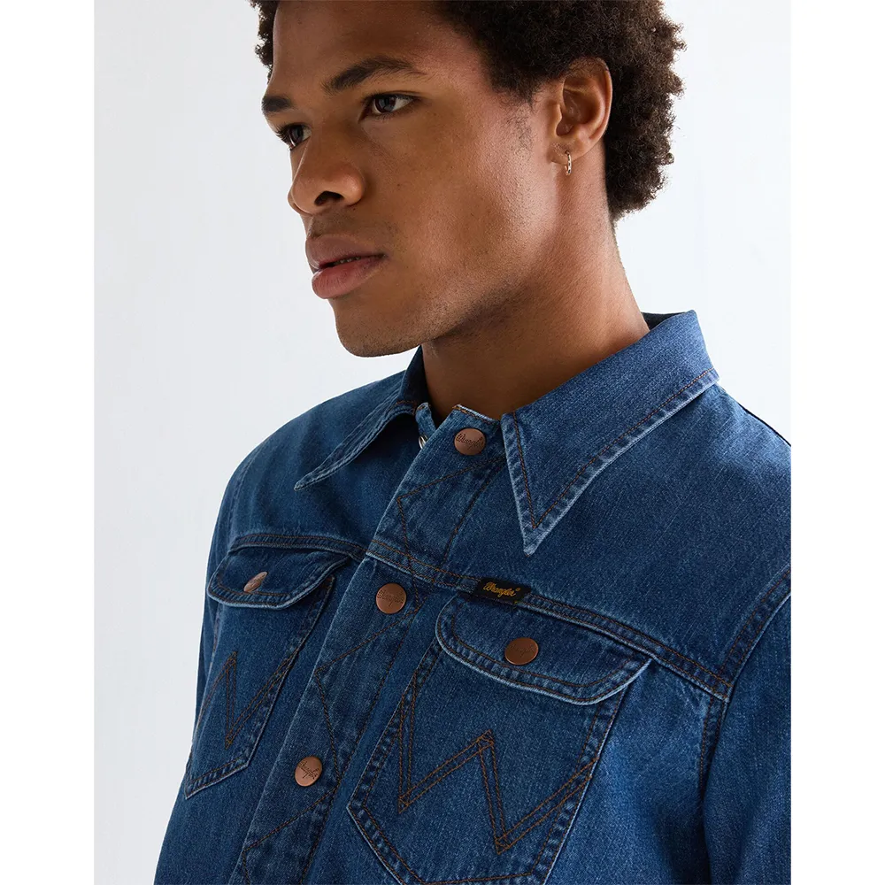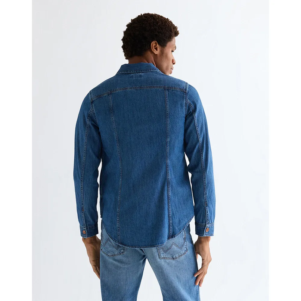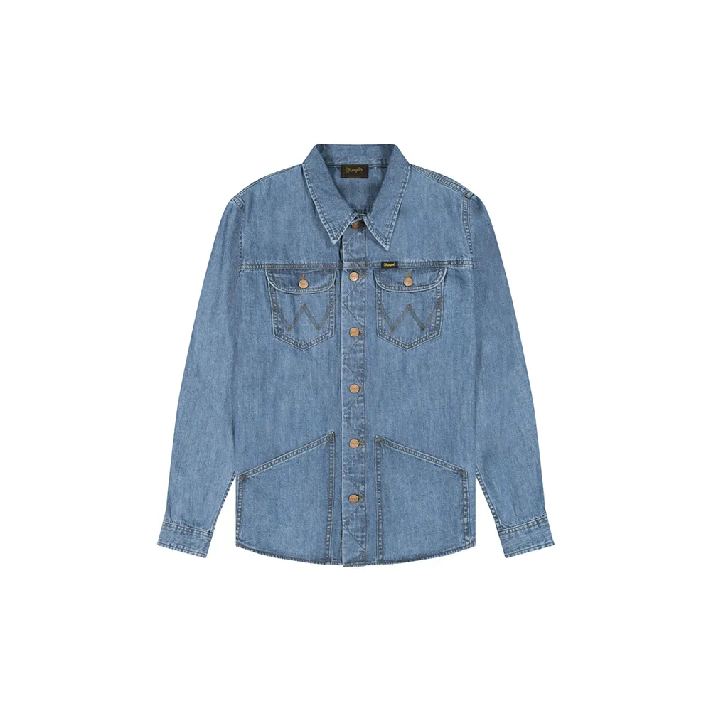 Рубашка Wrange - это культовая джинсовая вещь, вдохновленная архивными моделями, с манжетами на пуговицах и закругленным низом.