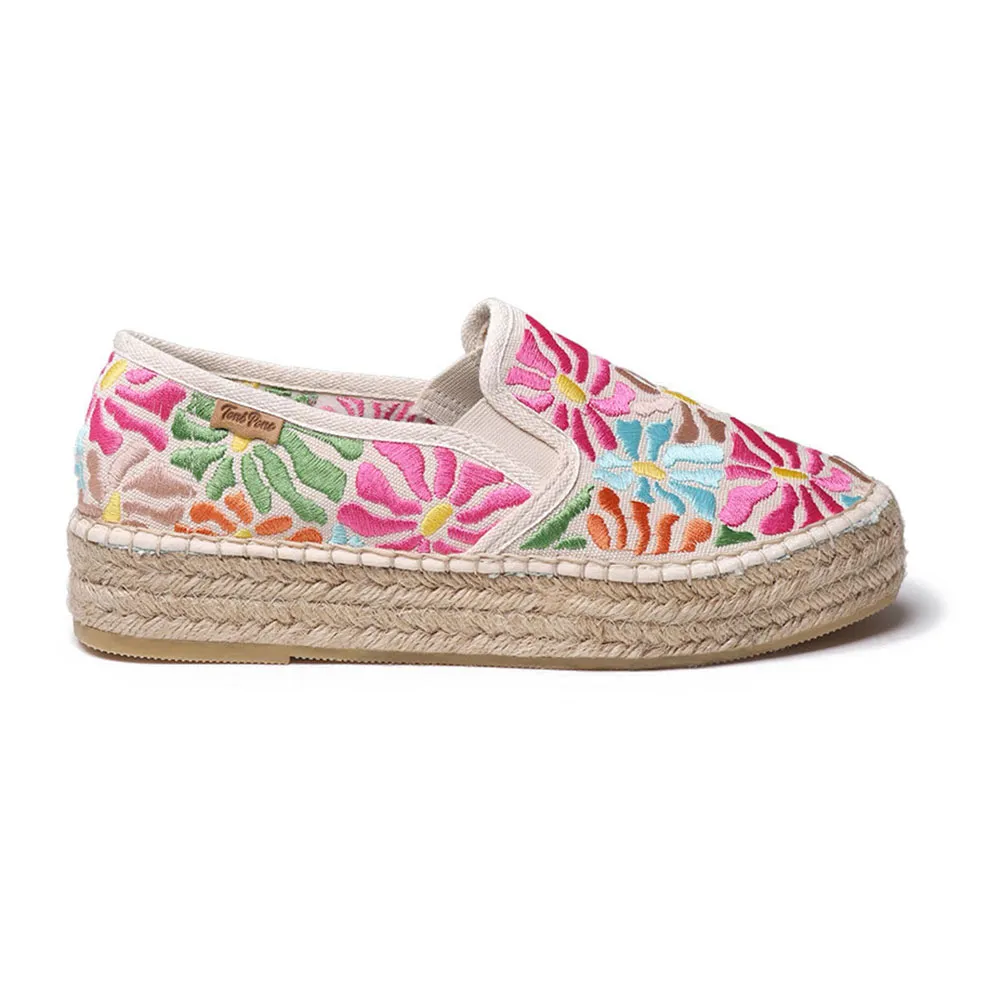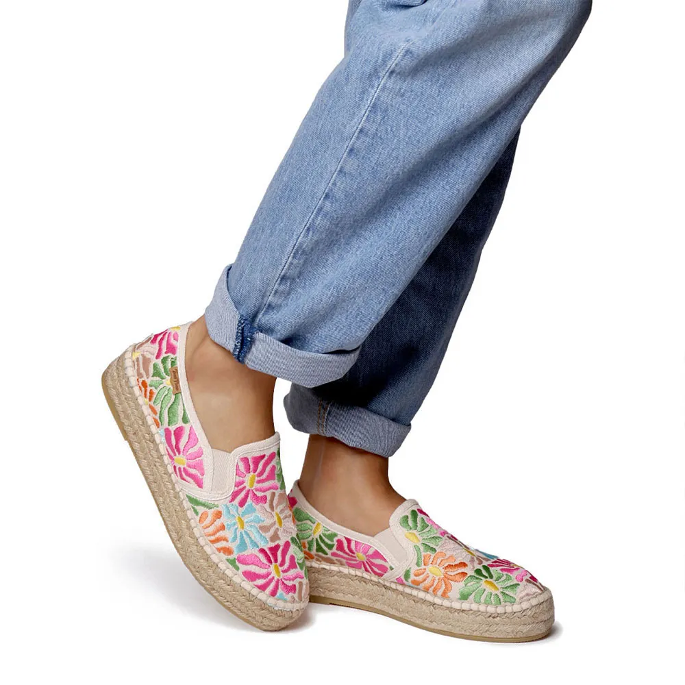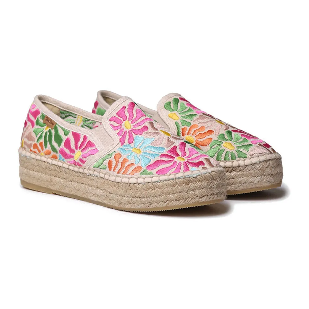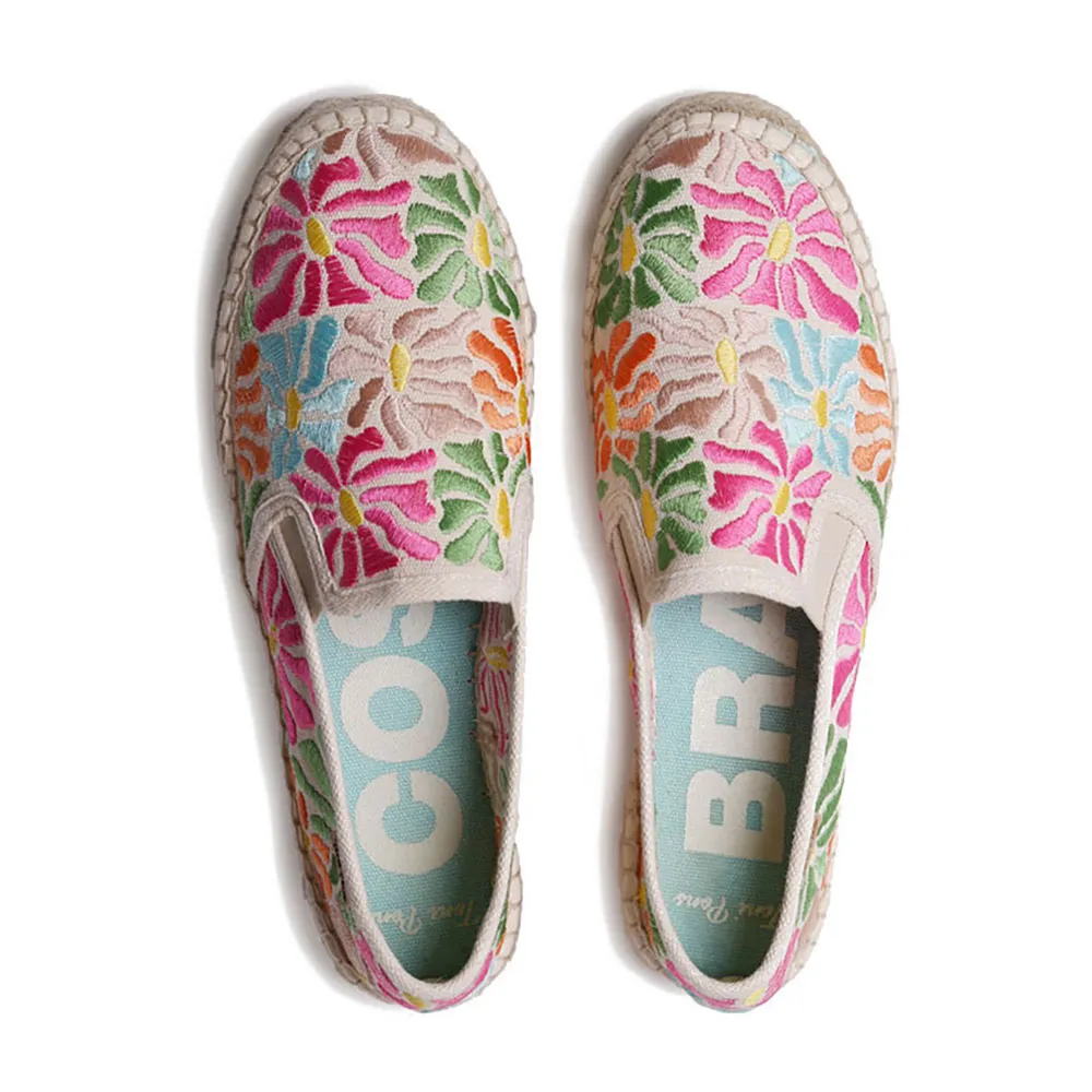 Эти закрытые эспадрильи из хлопчатобумажной ткани украшены многоцветной вышивкой и входят в капсульную коллекцию Costa Brava.