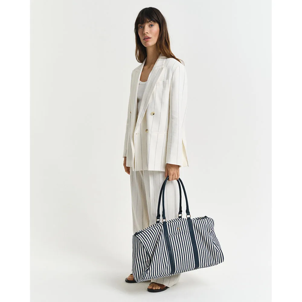 Путешествуйте стильно с этой премиальной дорожной сумкой от GANT, изготовленной из 100% хлопка и украшенной полосатым узором.