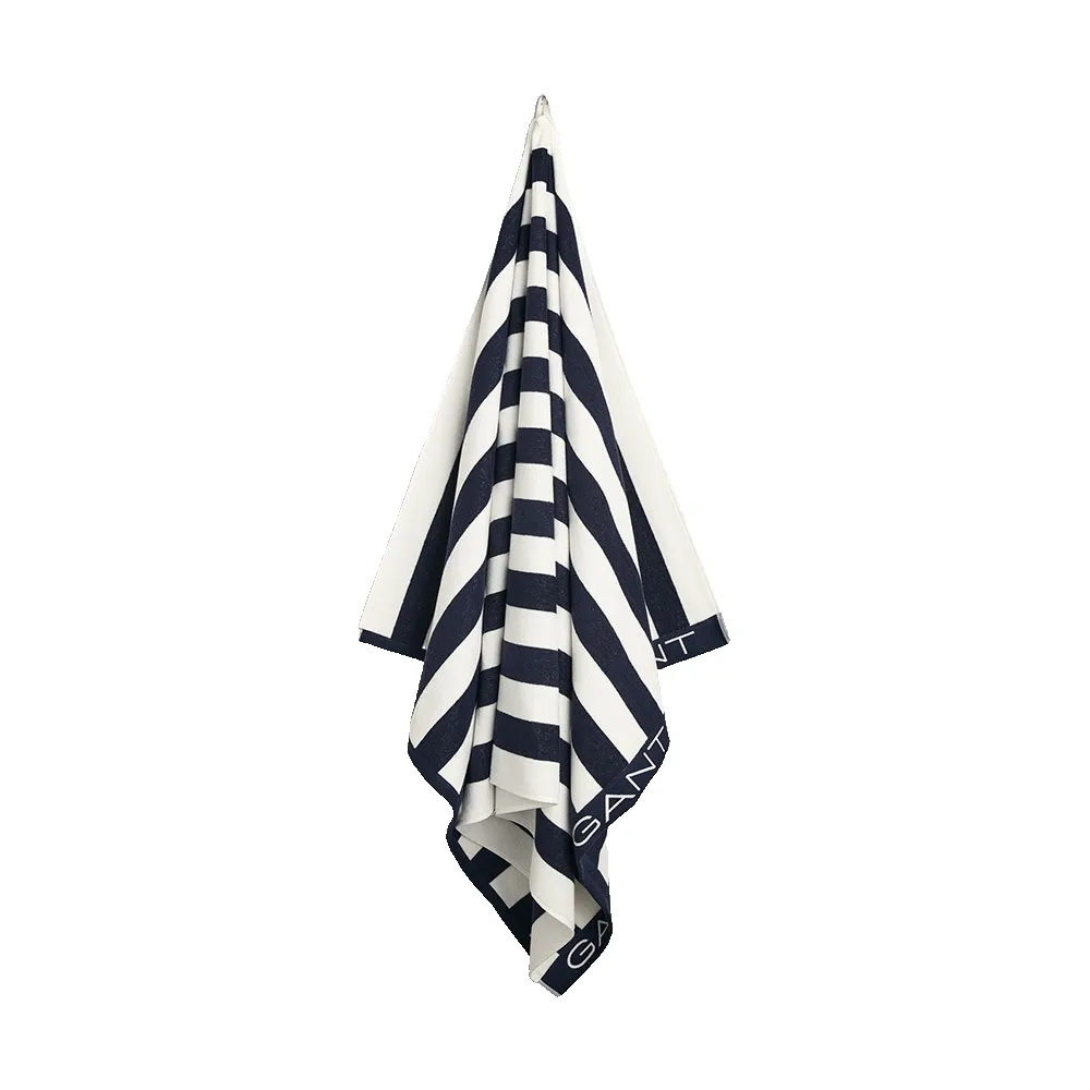 Оно выполнено в классическом морском стиле с блочными полосками и изготовлено из плотного, впитывающего сертифицированного органического хлопка плотностью 450 г/м².