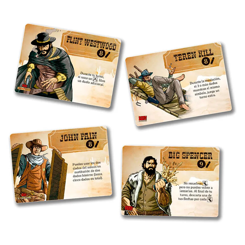 9 кубиков, 36 персонажей, 18 ролей, 17 сводных карт, 1 карта призрака, 29 маленьких карт, 3 разделителя карт, 10 жетонов стрел, 44 жетона пуль, 7 жетонов призраков, 15 жетонов ранений в дуэли, 3 правила, 3 правила Карты.