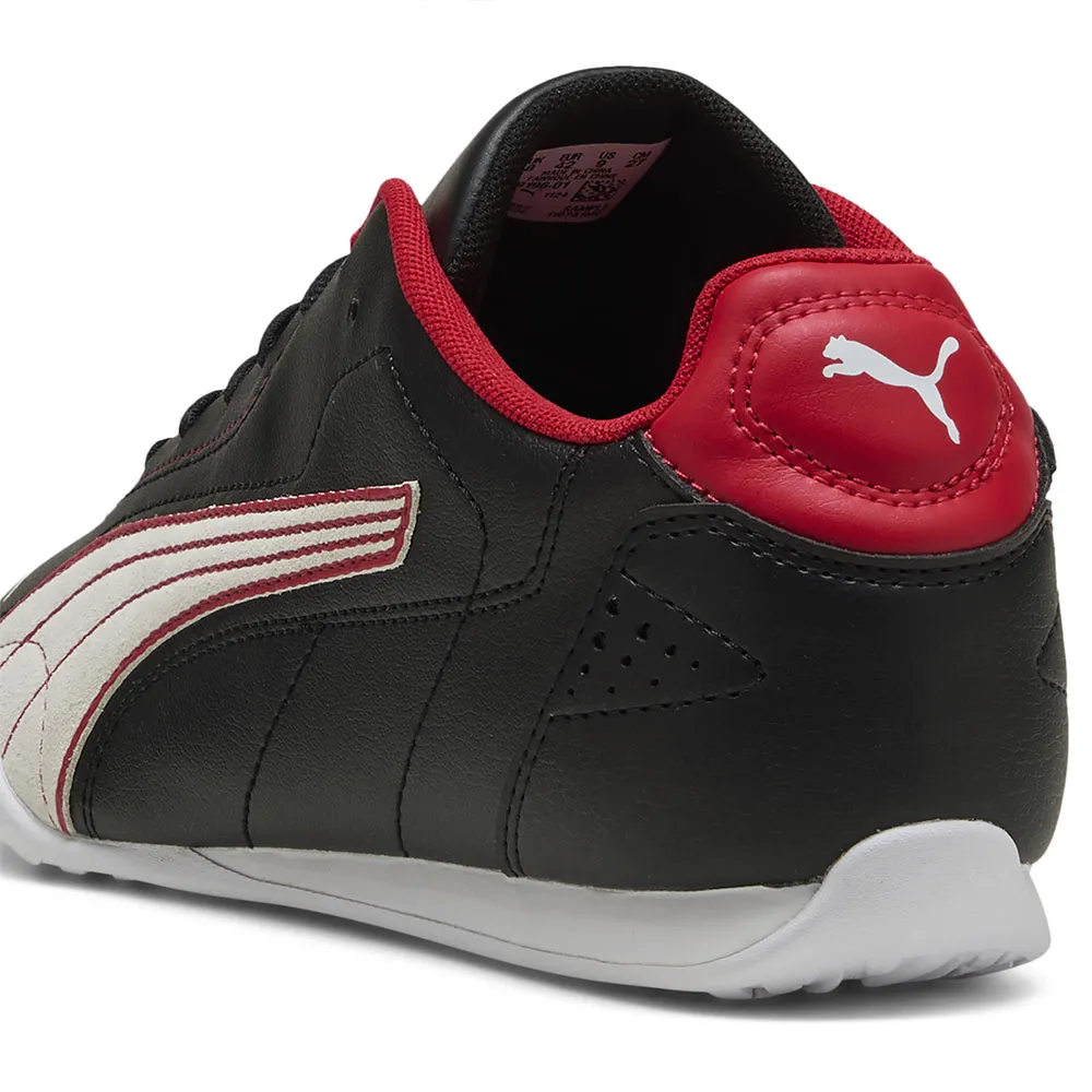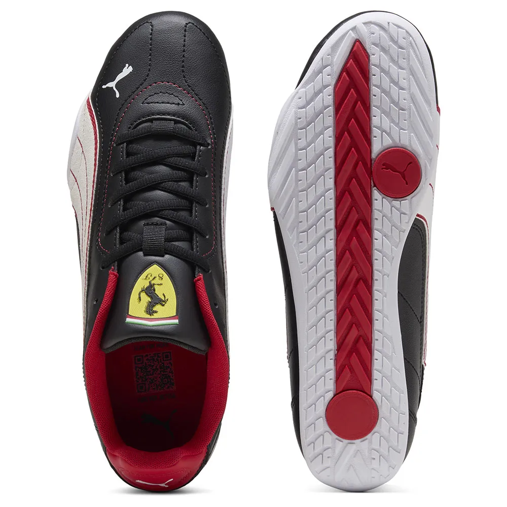 Вдохновленный автоспортом, этот элегантный силуэт выполнен из синтетической кожи, украшен декоративной строчкой и перфорацией, а также культовым логотипом Ferrari.