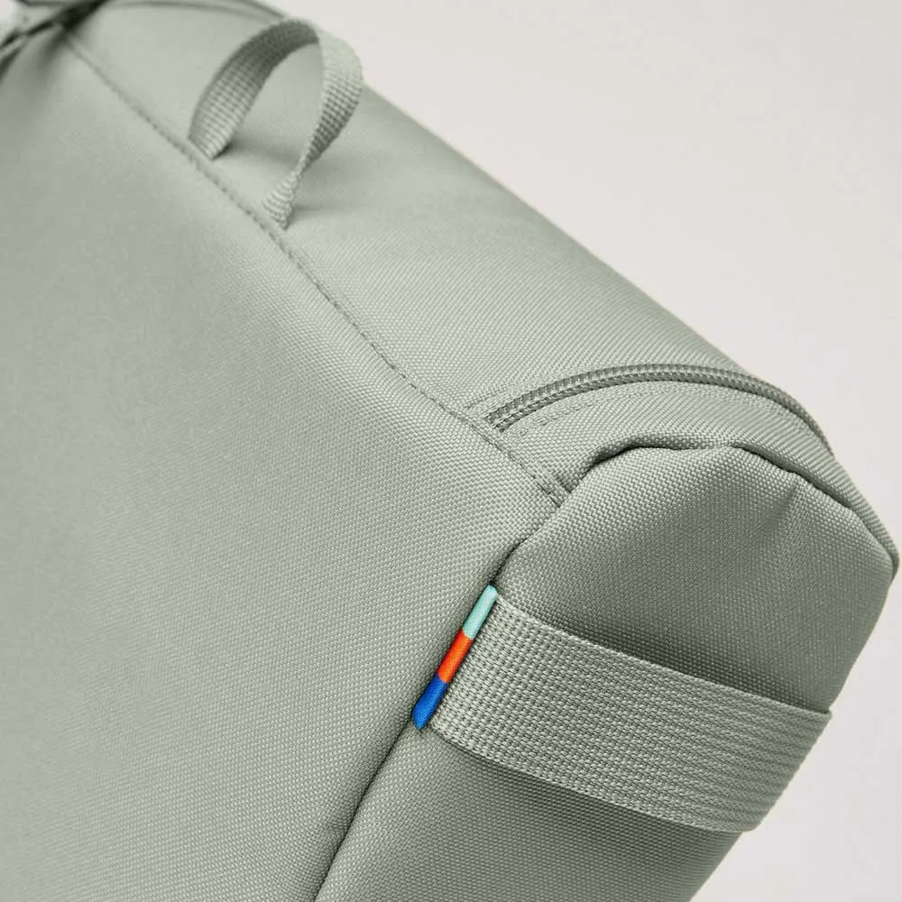 Основной материал RE:PET из переработанного пластика Ocean Impact, подкладка из переработанного ПЭТ, молнии из полиамида, наполнитель из полиэтилена и полиэстера, сетка из переработанного ПЭТ.