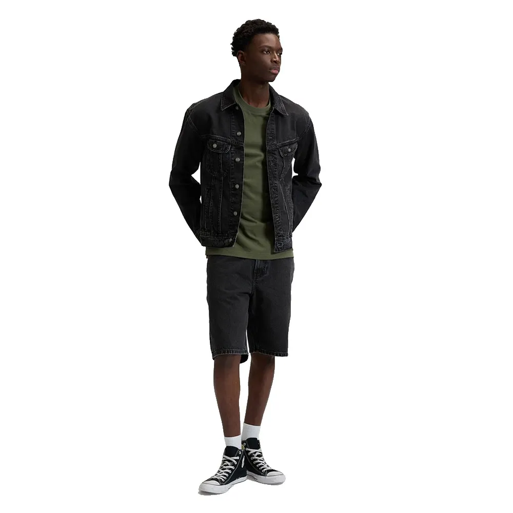 Изготовлена из плотного денима в нашем фирменном выцветшем черном цвете Rekindle с аутентичными потертостями вдоль швов.