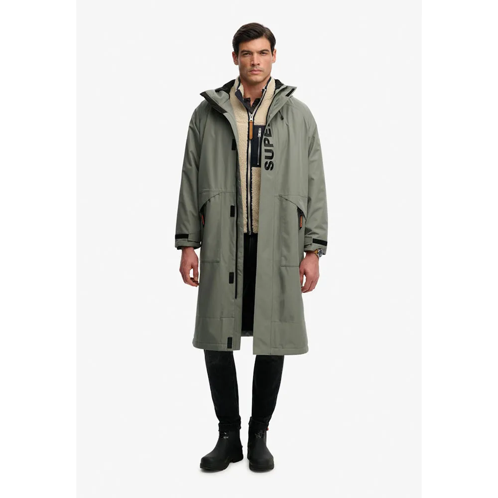 Свободный, струящийся крой, идеально подходящий для тех случаев, когда вам нужно пространство для движений. Прочная водоотталкивающая ткань. Ткань обработана усовершенствованным водоотталкивающим покрытием. Проклеенные швы. Ключевые открытые швы проклеены изнутри для предотвращения проникновения воды. Водонепроницаемость 5000 мм. Защита от дождя и влаги даже при небольшом давлении, идеально подходит для ненастных дождливых дней. Воздухопроницаемость 5000 мм. Обеспечивает комфортную циркуляцию воздуха при низкой активности. Капюшон с регулируемым шнурком. Двусторонняя застежка-молния с ветрозащитной планкой на липучке. Регулируемые манжеты на липучке с внутренней подкладкой из искусственной кожи. Два внешних и один внутренний карман на молнии. Фирменный значок на рукаве. Вышитый логотип на груди. Фирменный текст на спине. Дайте волю своему стилю с халатом Ultimate Superdry. Созданный для комфорта и удобства, он имеет два глубоких внешних кармана для хранения необходимых вещей и двустороннюю молнию с ветрозащитной планкой для дополнительной защиты. Водоотталкивающее покрытие DWR защитит вас от неожиданного дождя, а мягкая подкладка из искусственного меха окутает вас теплом и нежностью. Просторный, свободный крой позволяет легко надевать многослойную одежду. От прогулок с собакой до купания в открытой воде… она готова, когда вам это нужно.