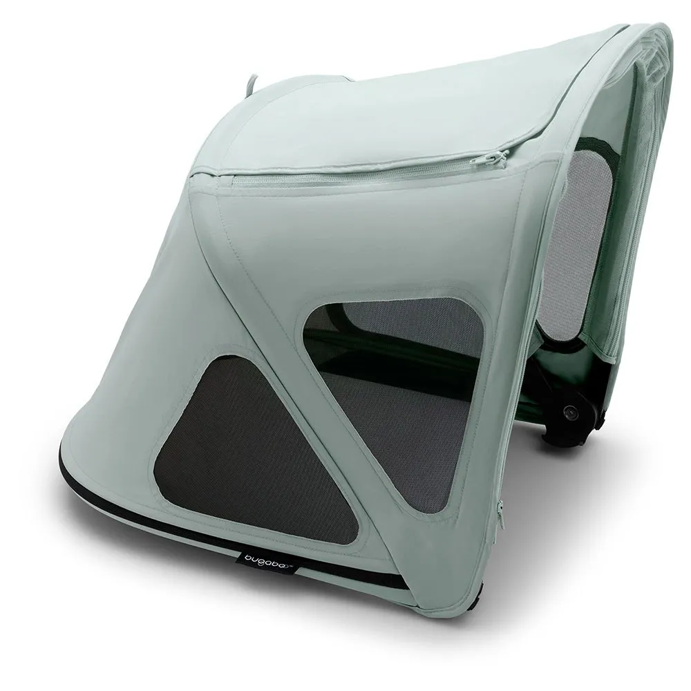 Капюшон Bugaboo расстегивается на молнии, открывая выдвижную панель, обеспечивающую оптимальное покрытие и еще большую защиту для вашего малыша в течение дня, независимо от погоды.