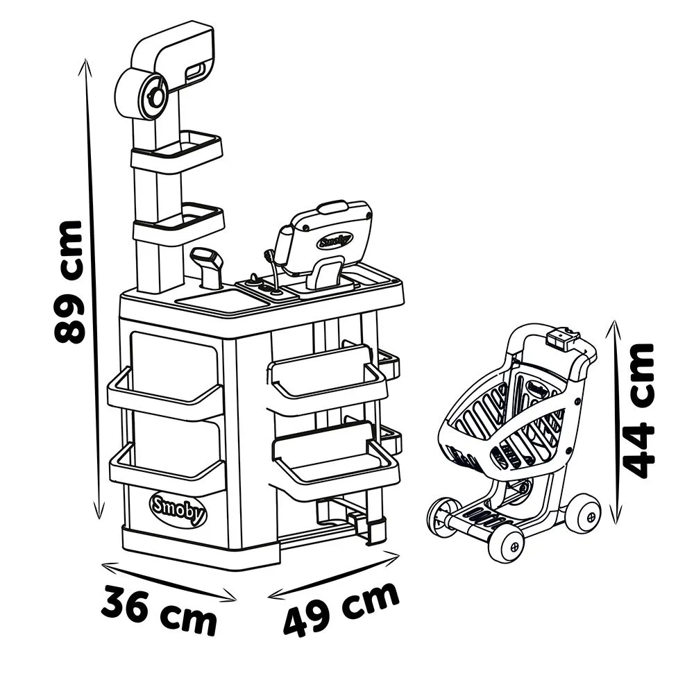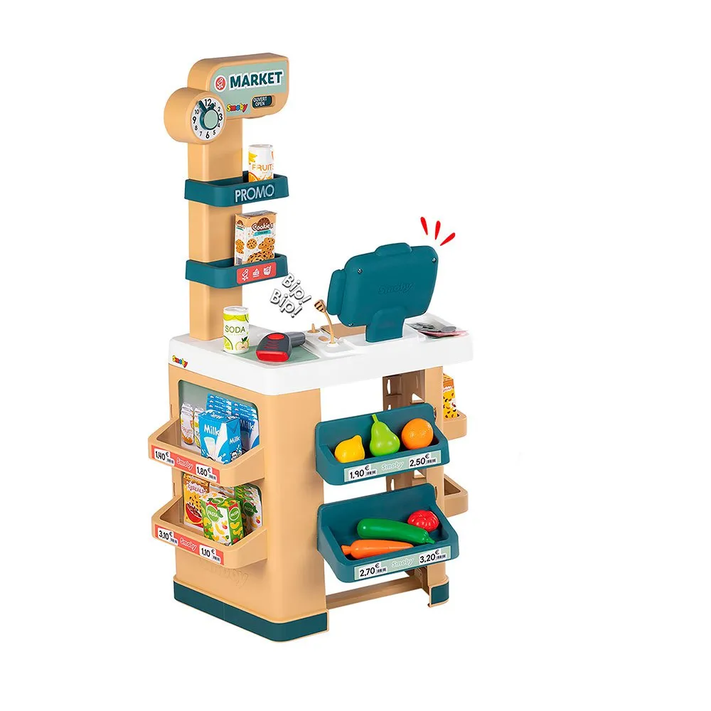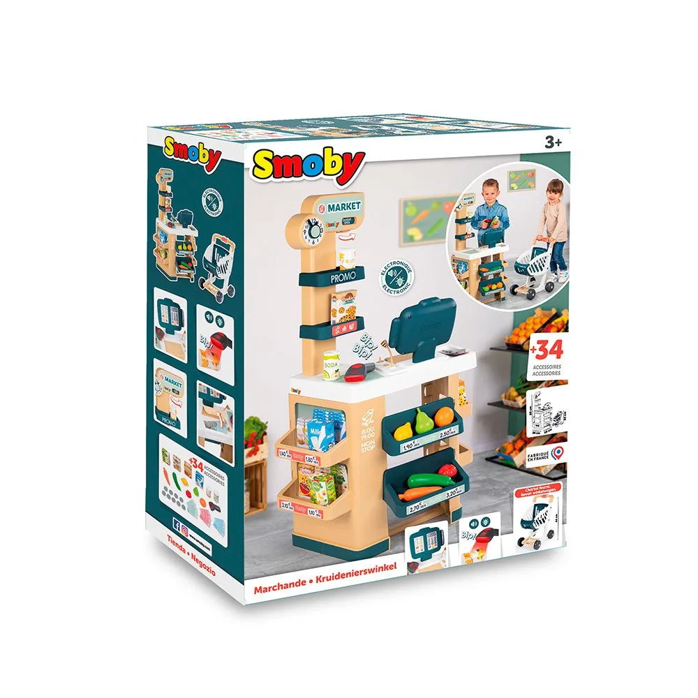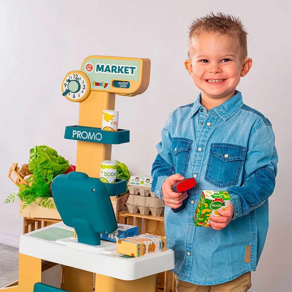 Smoby City Market также предлагает точный дизайн настоящего супермаркета и включает в себя тележку для покупок.