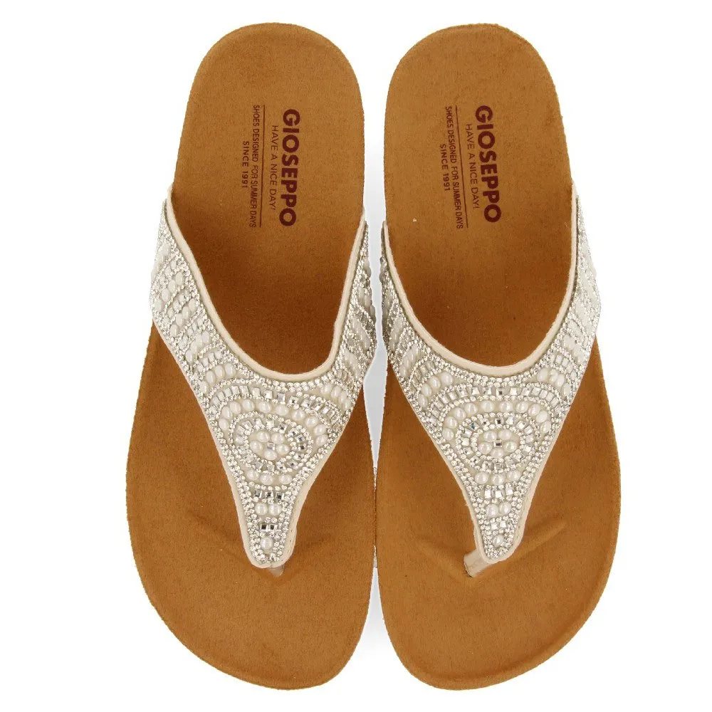 GIOSEPPO 71391 - это больше, чем просто шлепанцы; это выражение утонченного вкуса. Дизайн сразу же привлекает внимание своим красиво украшенным ремешком, создавая акцент, который сверкает с каждым шагом. Эта замысловатая детализация добавляет нотку роскоши, делая эти шлепанцы достаточно универсальными, чтобы сочетать их со струящимся летним платьем, классическими шортами или вашими любимыми льняными брюками. Изящная, но элегантная танкетка обеспечивает плавный подъем, визуально удлиняя силуэт, при этом сохраняя устойчивость и удобство ношения.