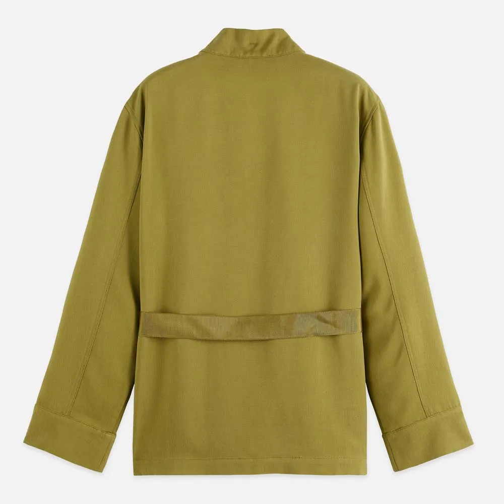 Пиджак с поясом из вискозной саржи.