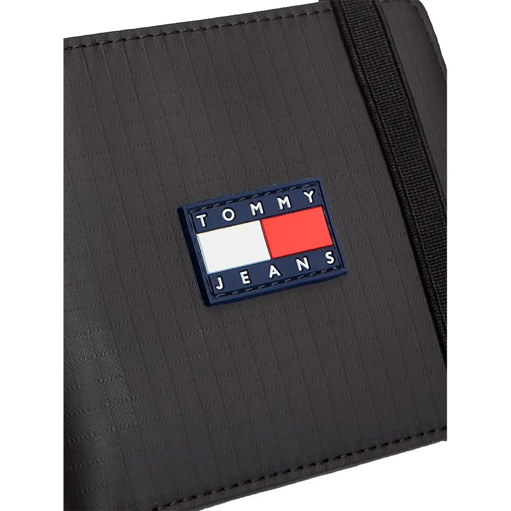 Мужской кошелек из переработанного полиэстера черного цвета с отделением для банкнот, держателем для карт и кошельком для монет от Tommy Jeans.