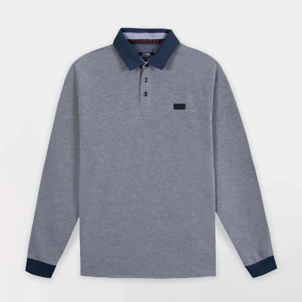 Мужская хлопковая рубашка-поло с длинным рукавом TBS Danelpol | Неподвластная времени морская элегантность