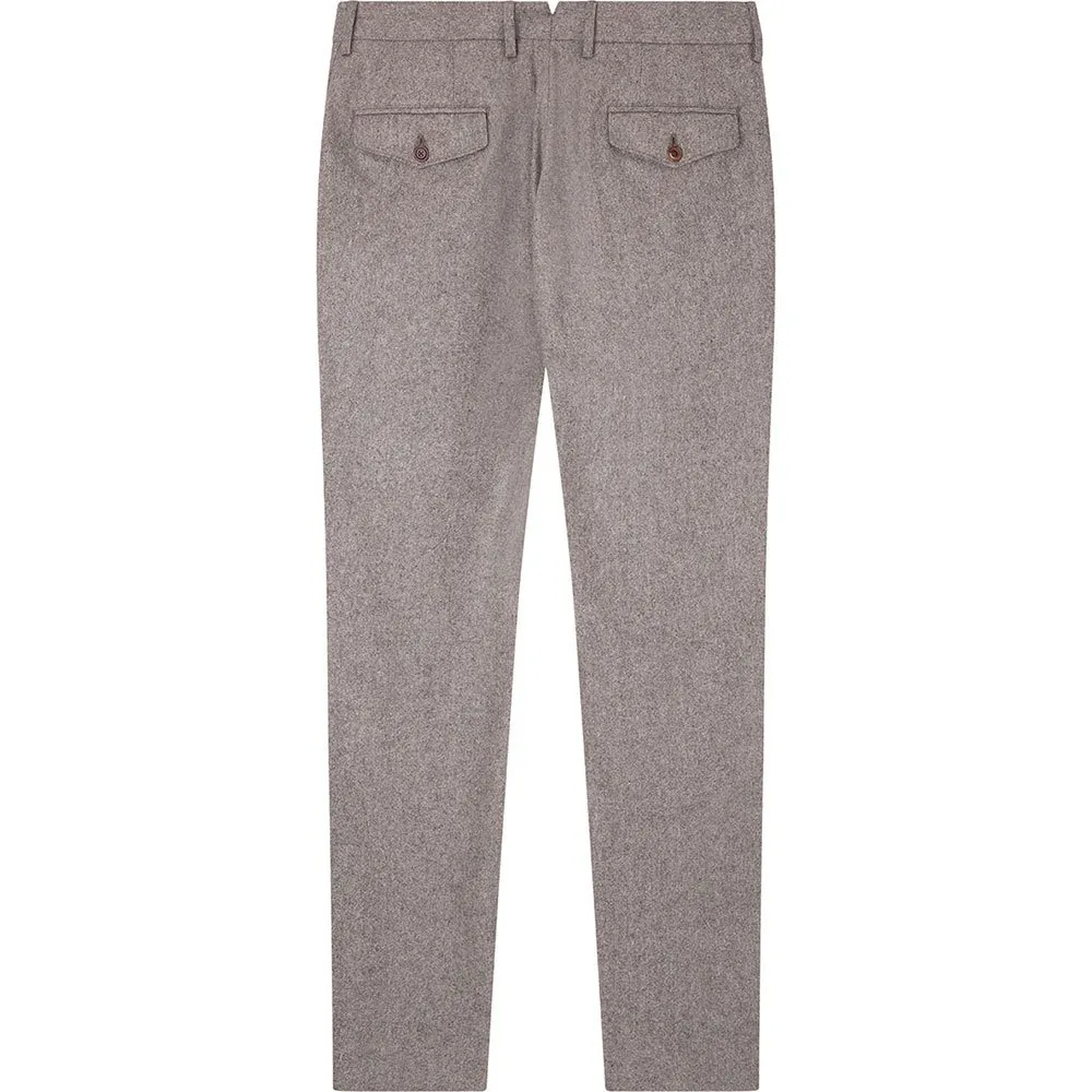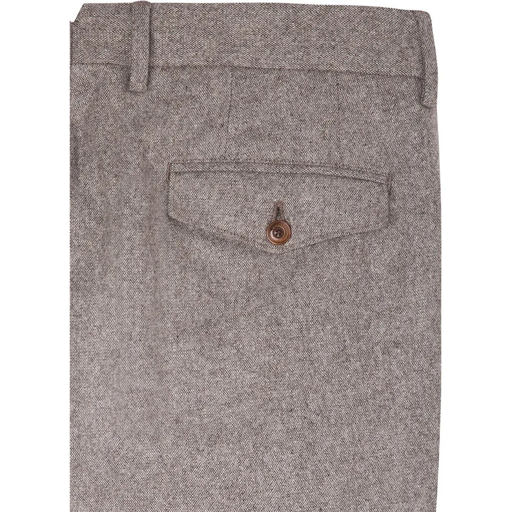 Отличительной чертой этих исключительных чиносов является характерный эффект Donegal. Характеризующийся тонкими, контрастными вкраплениями цвета, вплетенными в основную ткань, этот элемент дизайна добавляет замечательную глубину и многотональный вид, что отличает их от стандартных однотонных брюк. Эта уникальная текстура не только улучшает эстетическую привлекательность, но и обеспечивает невероятную универсальность, позволяя легко сочетать брюки с широким спектром рубашек, трикотажа и пиджаков. Это дань уважения классическим традициям портняжного искусства, переосмысленным для современного стиля.
