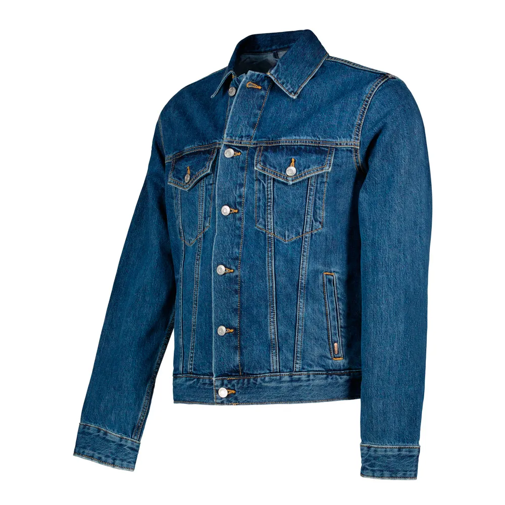 Ощутите идеальное сочетание комфорта и долговечности. Изготовленная из высококачественного, прочного хлопкового денима, эта куртка создана на века и с каждой ноской становится только лучше, приобретая уникальную патину, которая расскажет вашу историю. Классический силуэт куртки-тракера дополнен аутентичными деталями, включая острый заостренный воротник и застежку спереди на фирменные металлические пуговицы, обеспечивающие надежную и стильную посадку. Отсутствие молнии сохраняет традиционный, лаконичный вид. Функциональная и модная, она имеет два нагрудных кармана с клапанами на пуговицах, идеально подходящих для хранения мелких вещей, и два незаметных боковых прорезных кармана для дополнительного удобства и согревания рук.