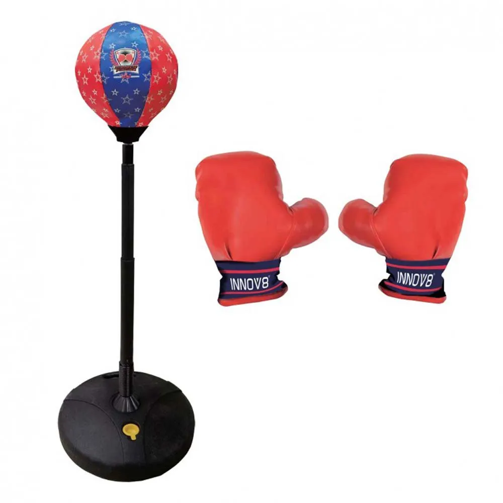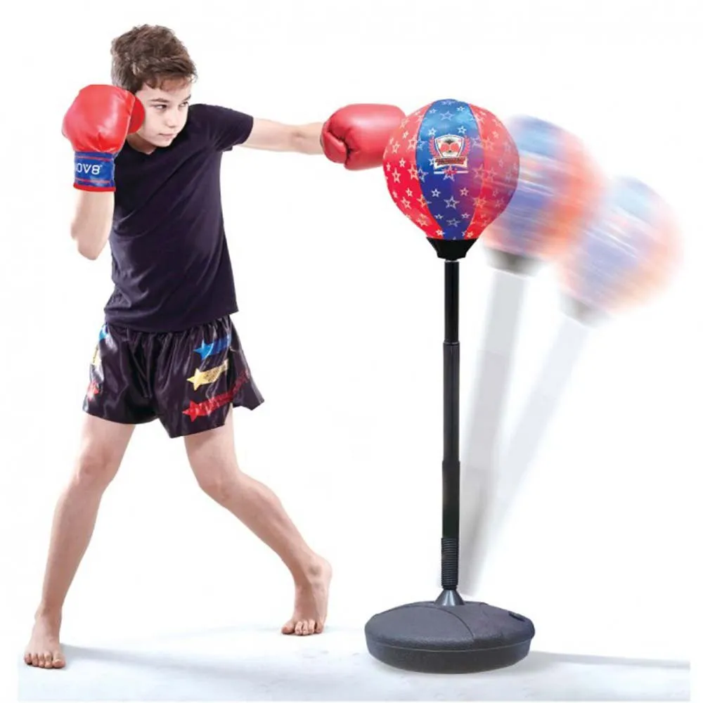 * Основные характеристики: Полный боксерский комплект для детей, мягкие защитные перчатки, отдельно стоящая конструкция груши, способствует физической активности и координации.