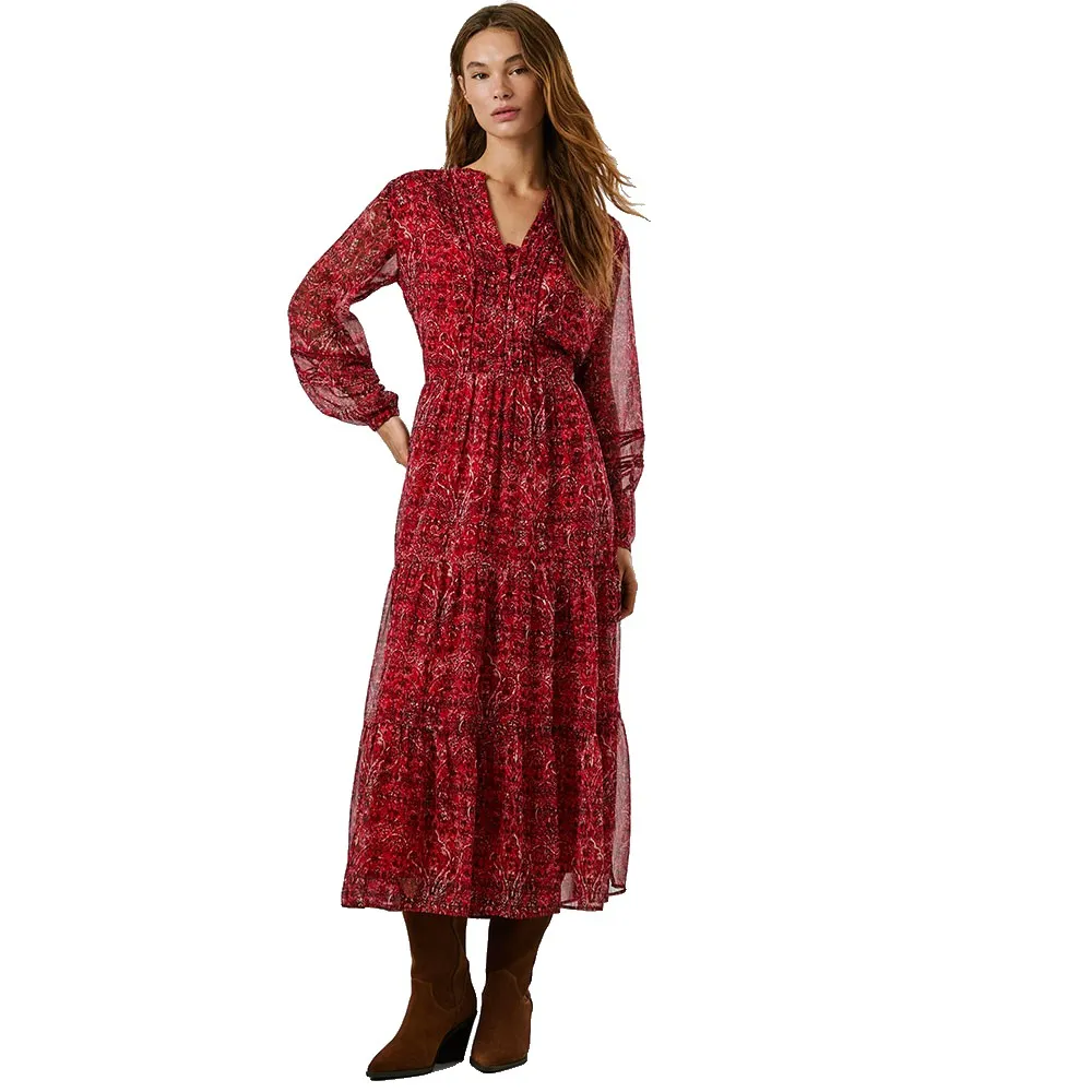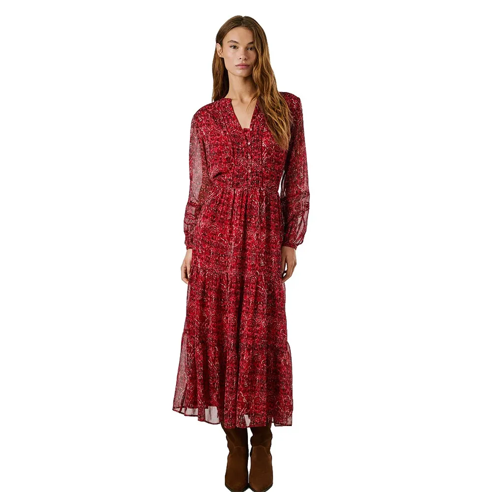 Окунитесь в мир непринужденной элегантности и богемного очарования с платьем-миди с длинными рукавами PEPE JEANS Miley. Созданное для современной женщины, которая ценит стиль и комфорт, это потрясающее платье-миди - универсальный шедевр, которому суждено стать любимой вещью в вашем гардеробе. Его струящийся силуэт и продуманные детали отражают свободолюбивый дух бренда Pepe Jeans, предлагая идеальное сочетание непринужденной изысканности и современной женственности.
