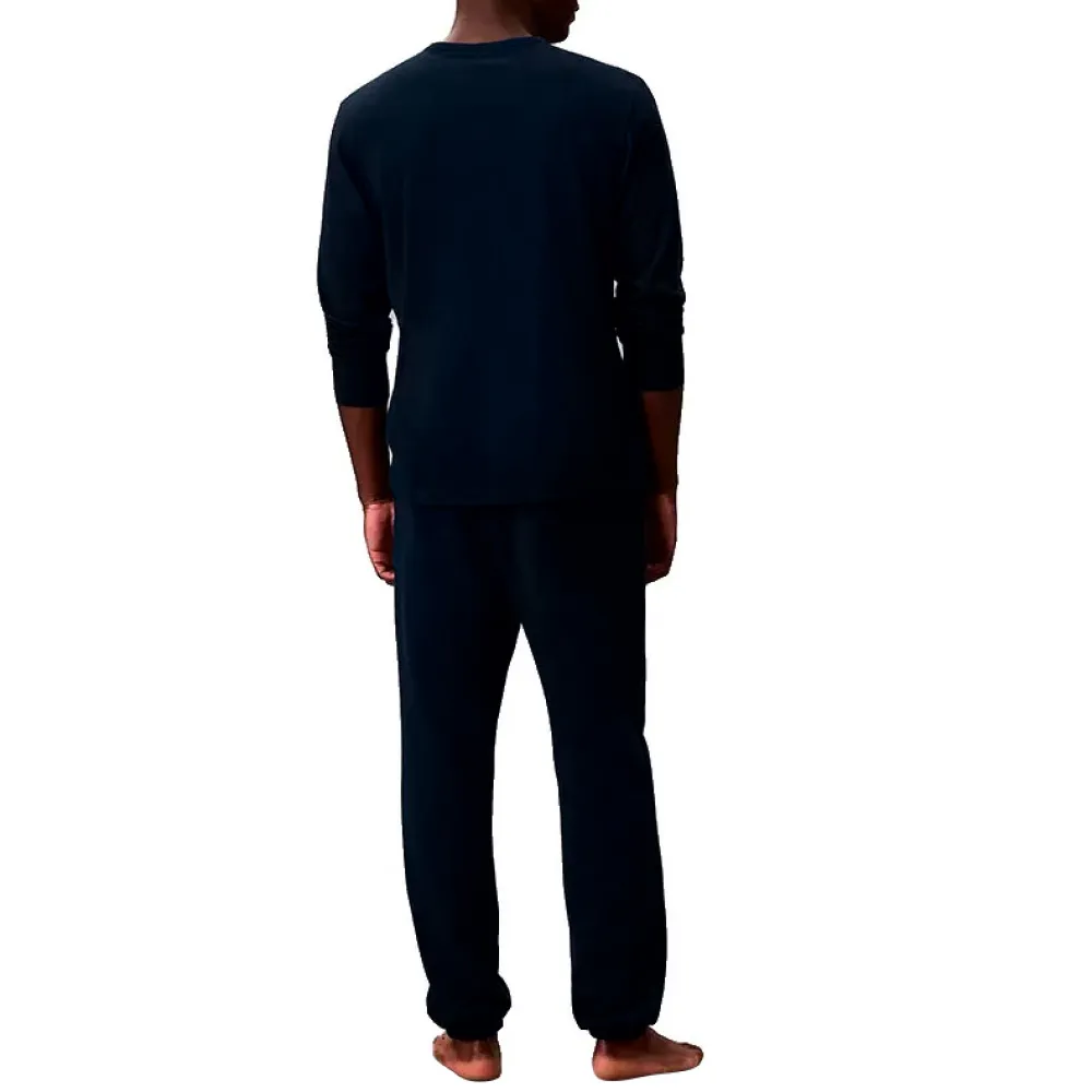 Длинный пижамный комплект Calvin Klein с логотипом спереди и брюки с манжетами внизу.